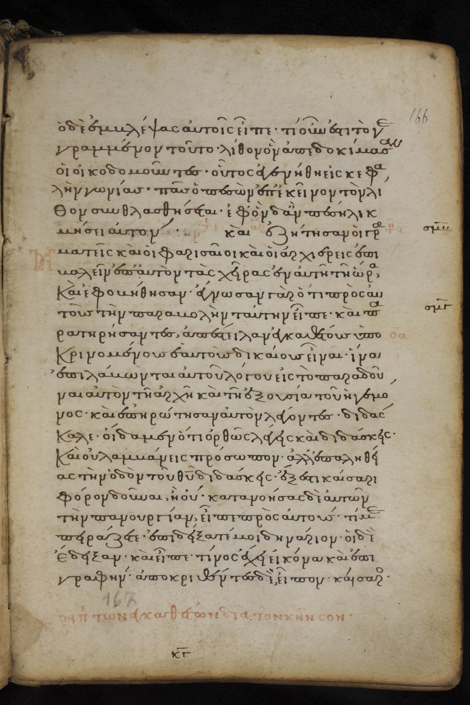 Thirteenth century minuscule of the Gospels on parchment; 237 leaves, 1 column, 23 lines per column. Images were taken at the National Library of Greece in Athens.