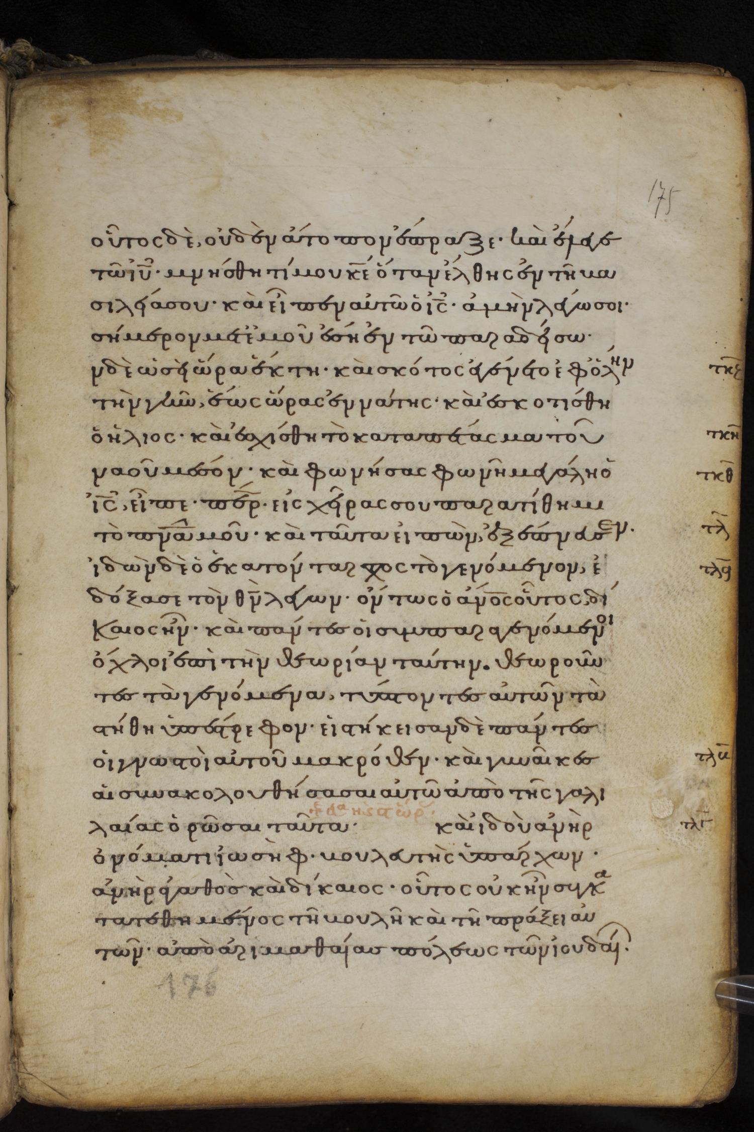 Thirteenth century minuscule of the Gospels on parchment; 237 leaves, 1 column, 23 lines per column. Images were taken at the National Library of Greece in Athens.