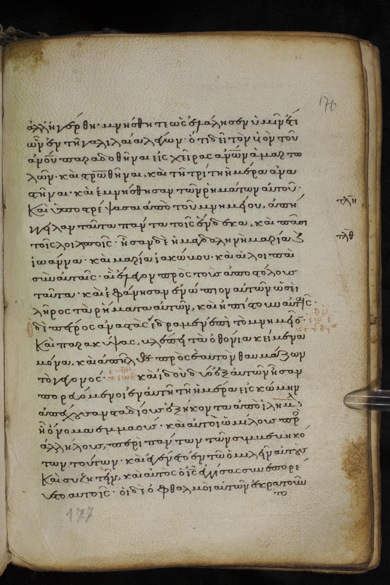 Thirteenth century minuscule of the Gospels on parchment; 237 leaves, 1 column, 23 lines per column. Images were taken at the National Library of Greece in Athens.