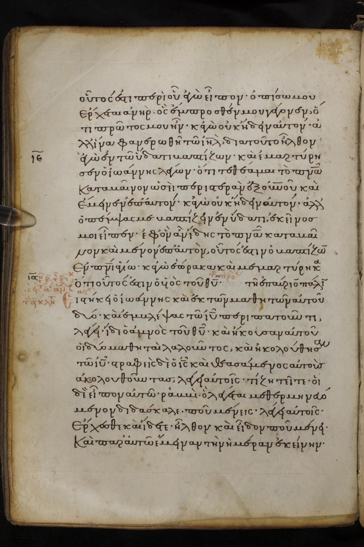 Thirteenth century minuscule of the Gospels on parchment; 237 leaves, 1 column, 23 lines per column. Images were taken at the National Library of Greece in Athens.