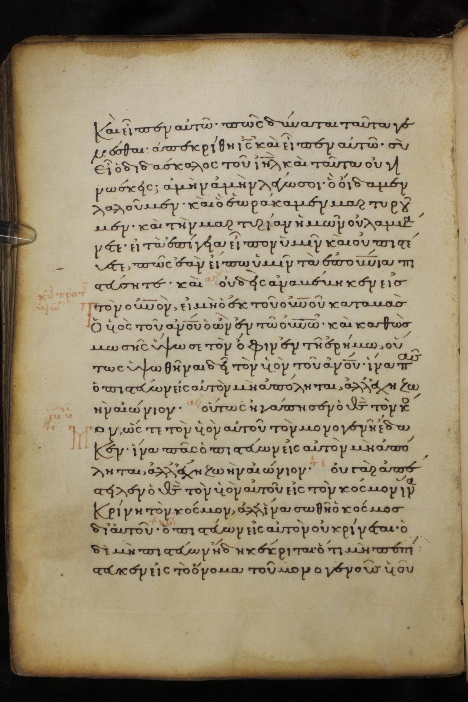 Thirteenth century minuscule of the Gospels on parchment; 237 leaves, 1 column, 23 lines per column. Images were taken at the National Library of Greece in Athens.