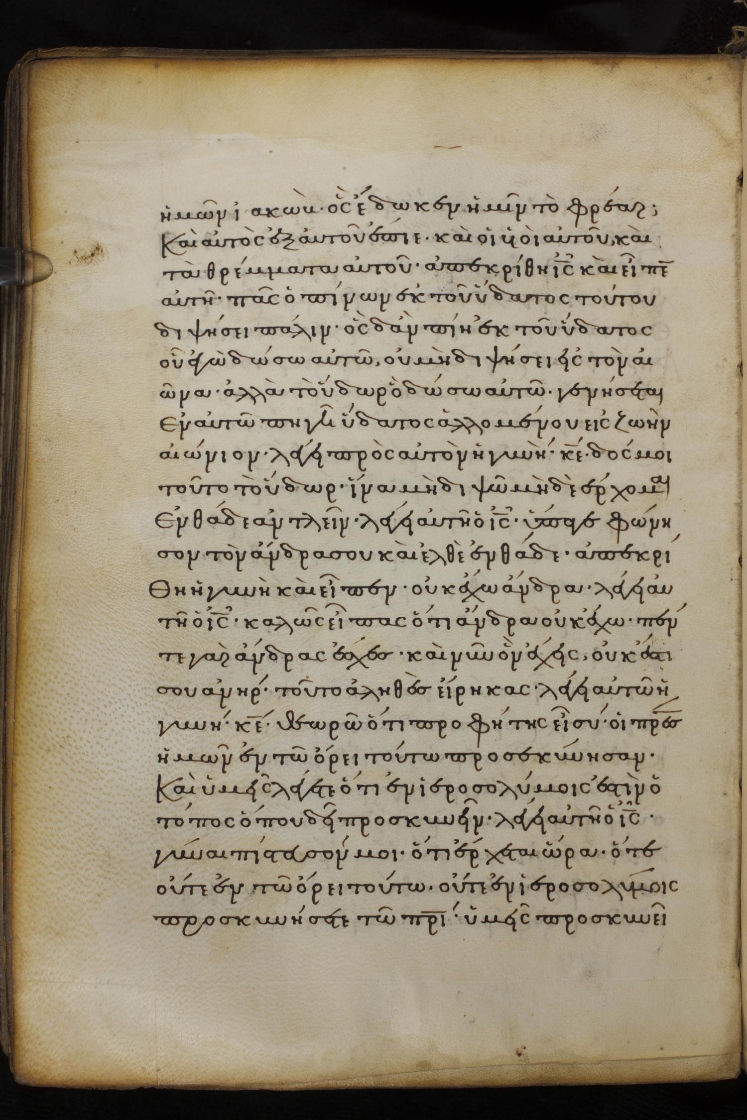 Thirteenth century minuscule of the Gospels on parchment; 237 leaves, 1 column, 23 lines per column. Images were taken at the National Library of Greece in Athens.