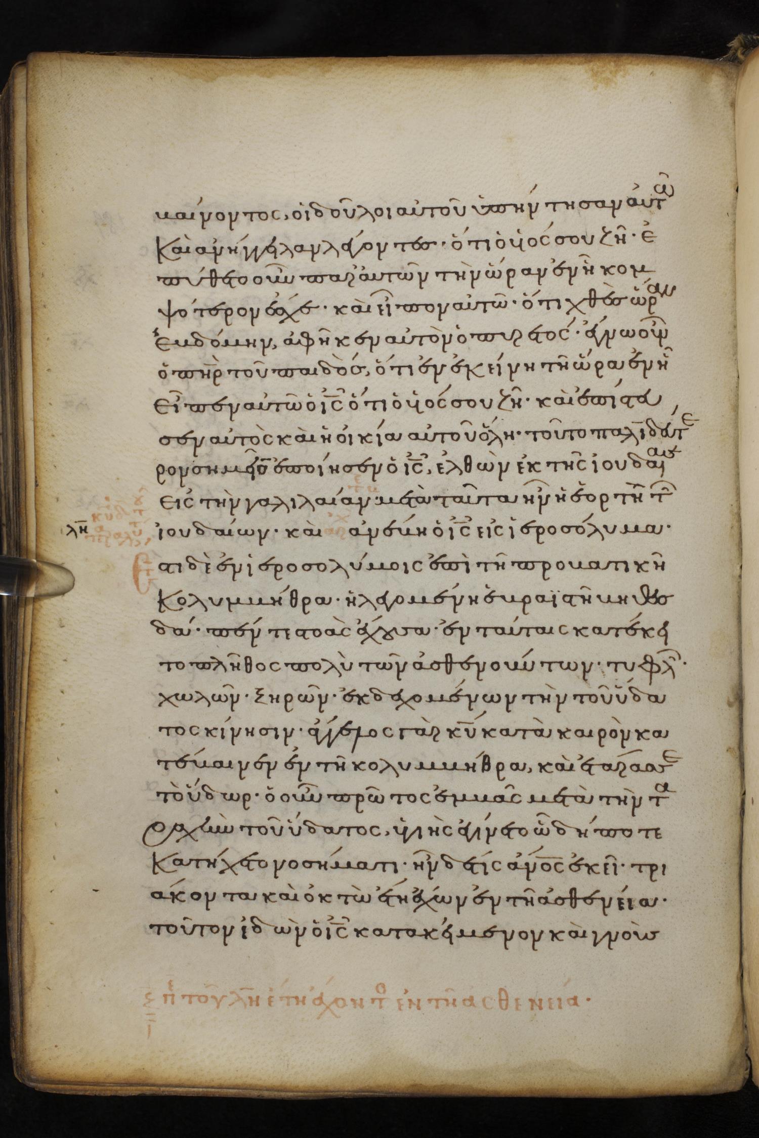 Thirteenth century minuscule of the Gospels on parchment; 237 leaves, 1 column, 23 lines per column. Images were taken at the National Library of Greece in Athens.