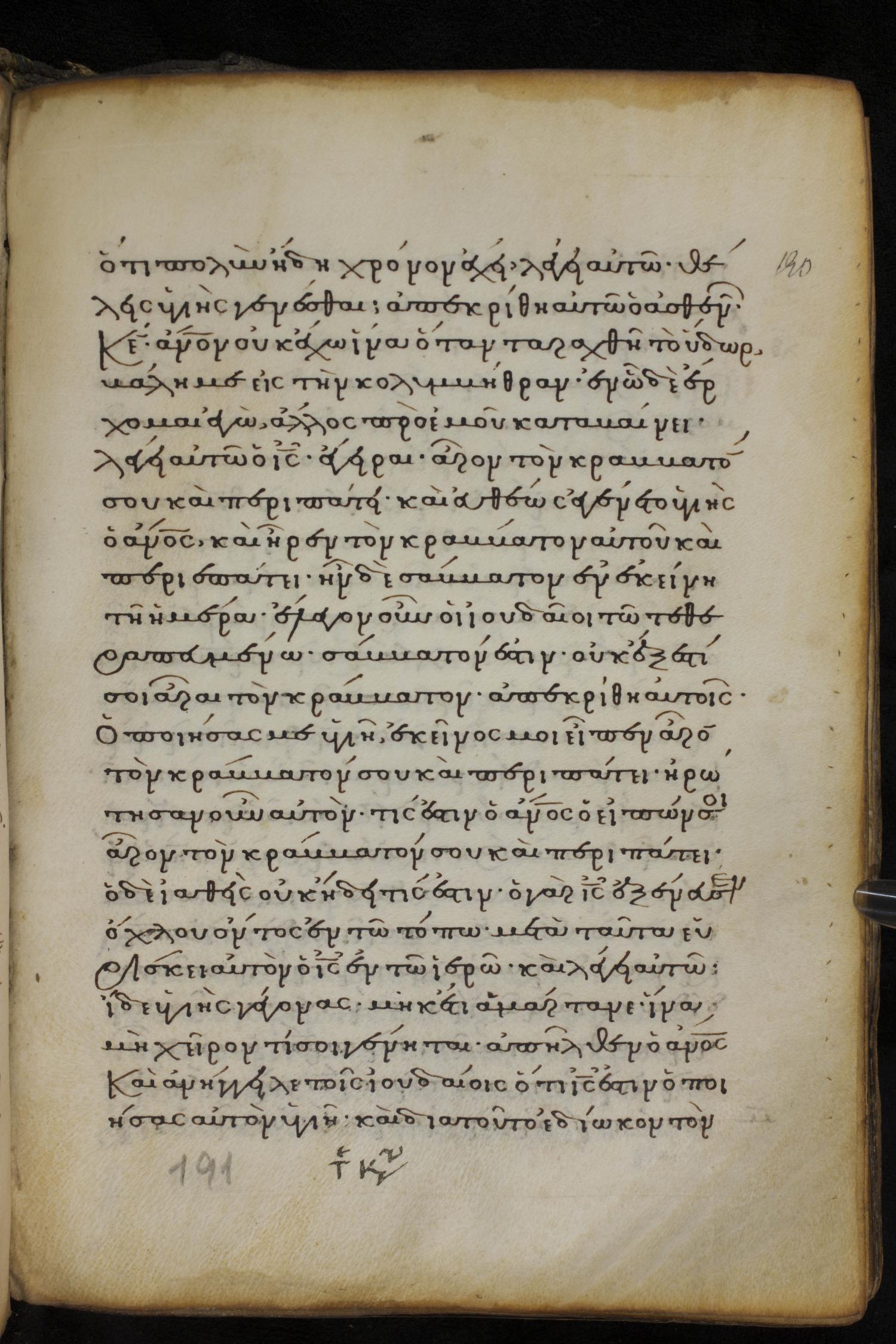 Thirteenth century minuscule of the Gospels on parchment; 237 leaves, 1 column, 23 lines per column. Images were taken at the National Library of Greece in Athens.