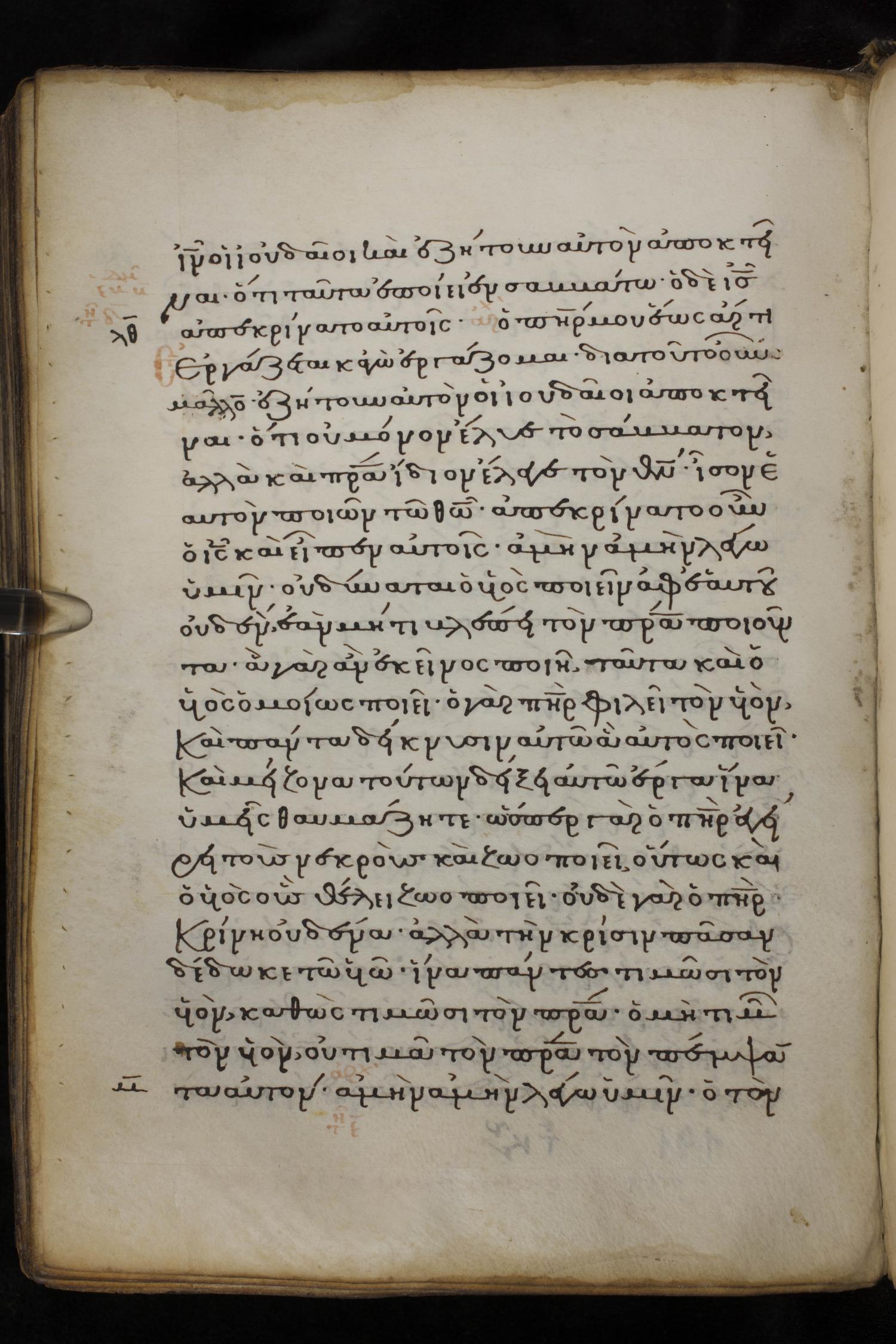 Thirteenth century minuscule of the Gospels on parchment; 237 leaves, 1 column, 23 lines per column. Images were taken at the National Library of Greece in Athens.