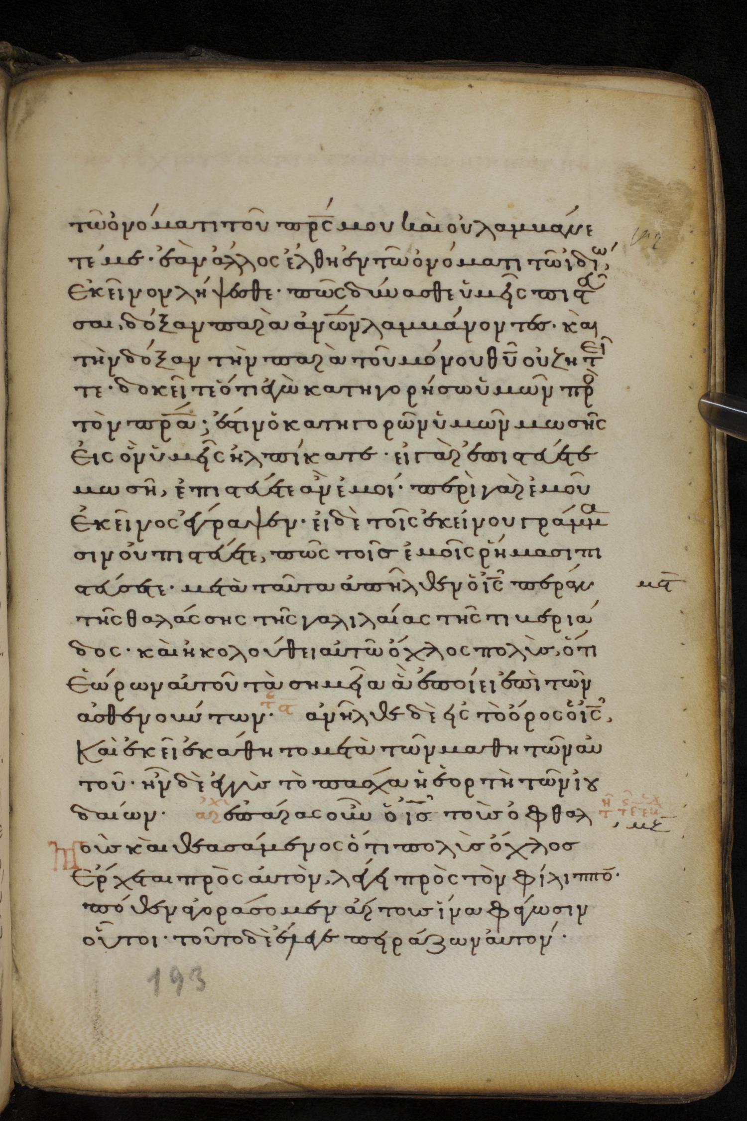 Thirteenth century minuscule of the Gospels on parchment; 237 leaves, 1 column, 23 lines per column. Images were taken at the National Library of Greece in Athens.