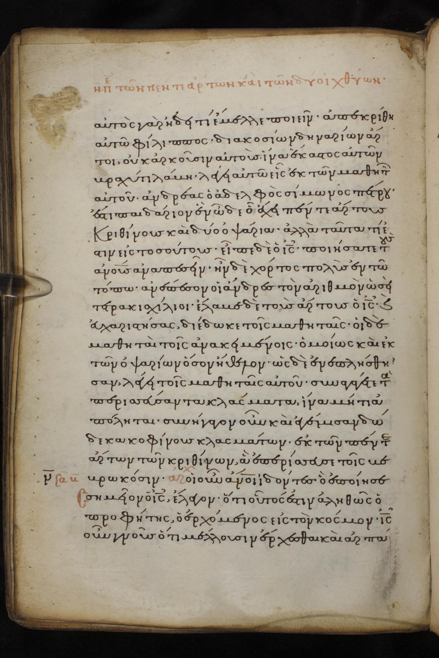 Thirteenth century minuscule of the Gospels on parchment; 237 leaves, 1 column, 23 lines per column. Images were taken at the National Library of Greece in Athens.