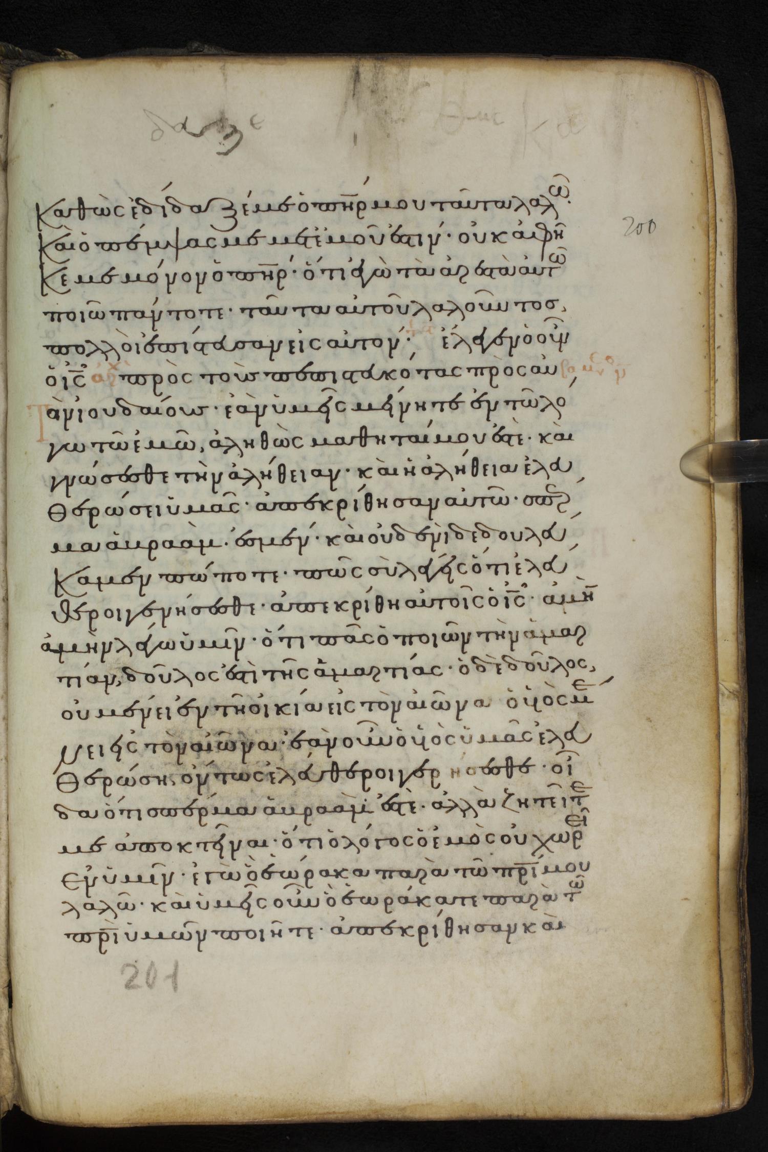 Thirteenth century minuscule of the Gospels on parchment; 237 leaves, 1 column, 23 lines per column. Images were taken at the National Library of Greece in Athens.