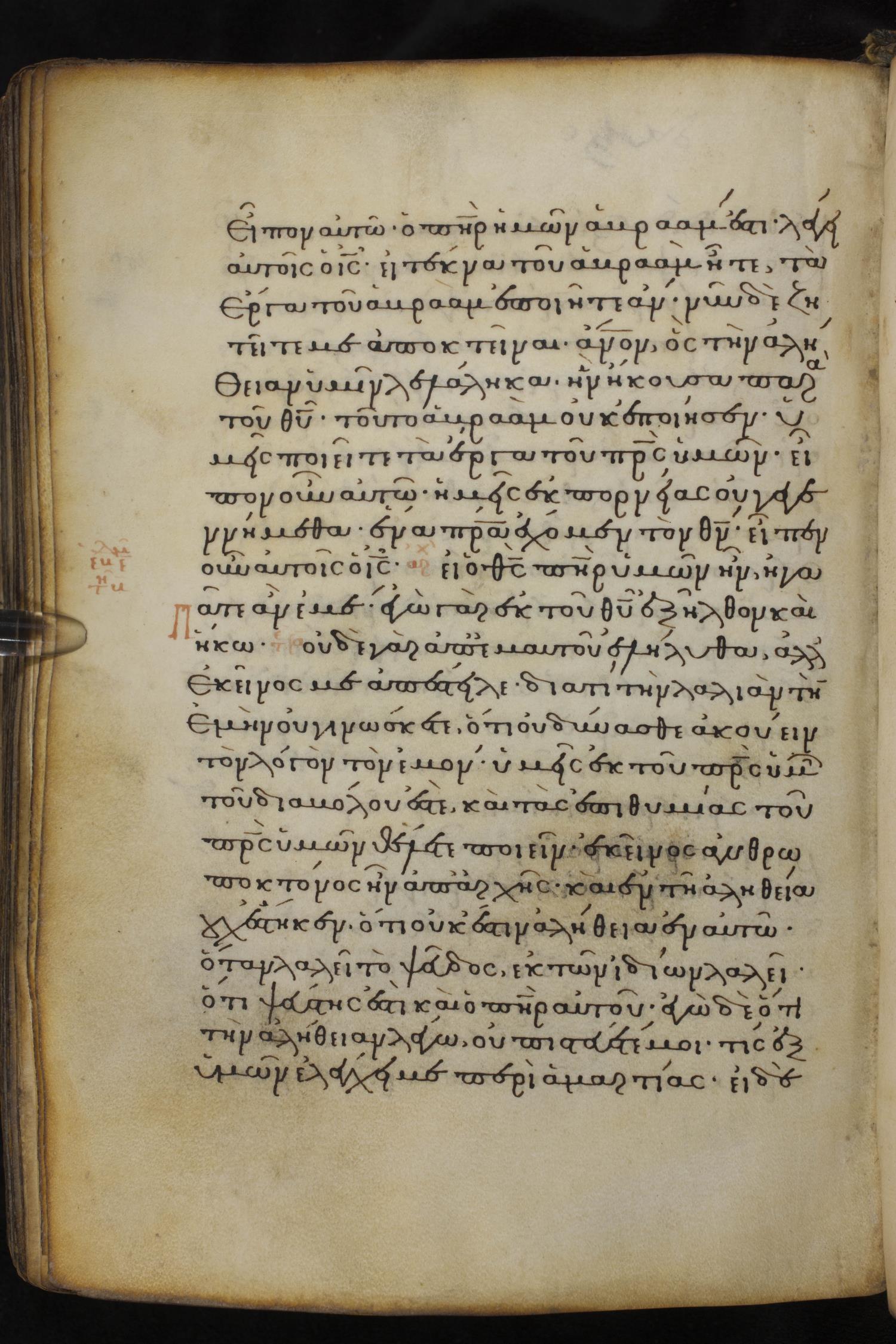 Thirteenth century minuscule of the Gospels on parchment; 237 leaves, 1 column, 23 lines per column. Images were taken at the National Library of Greece in Athens.