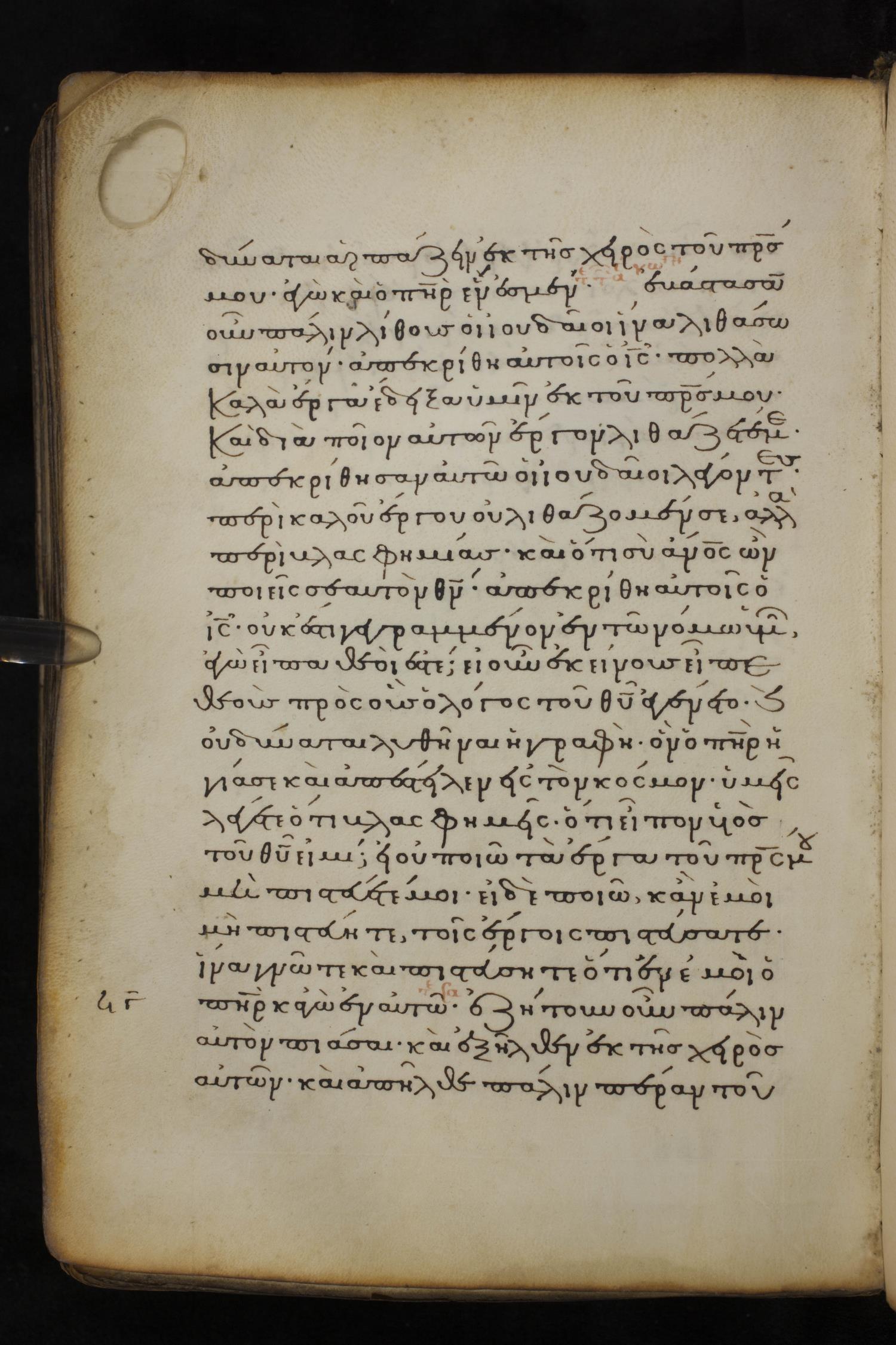 Thirteenth century minuscule of the Gospels on parchment; 237 leaves, 1 column, 23 lines per column. Images were taken at the National Library of Greece in Athens.