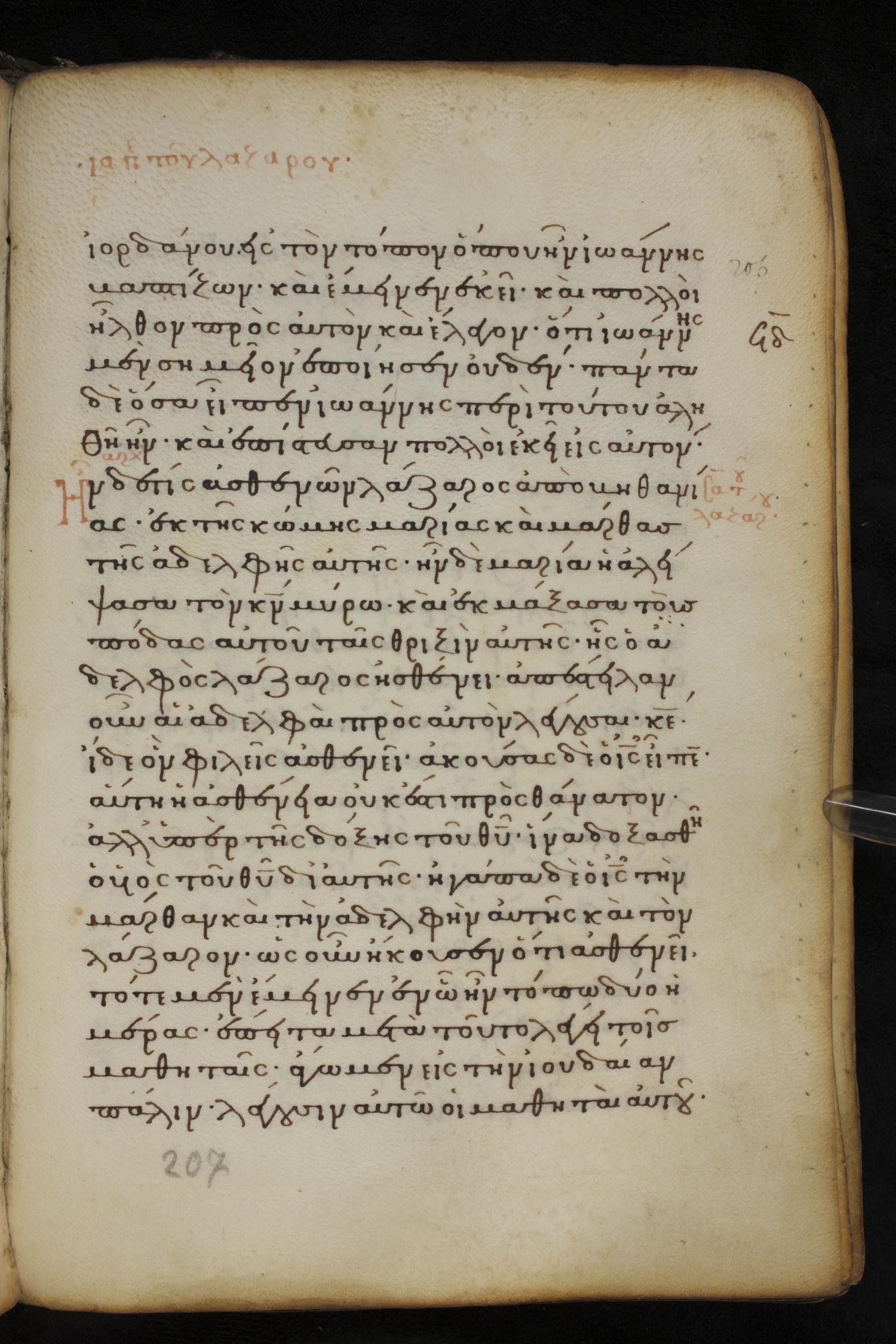 Ἦν δέ τις ἀσθενῶν, Λάζαρος ἀπὸ Βηθανίας ἐκ τῆς κώμης Μαρίας καὶ Μάρθας τῆς ἀδελφῆς αὐτῆς.