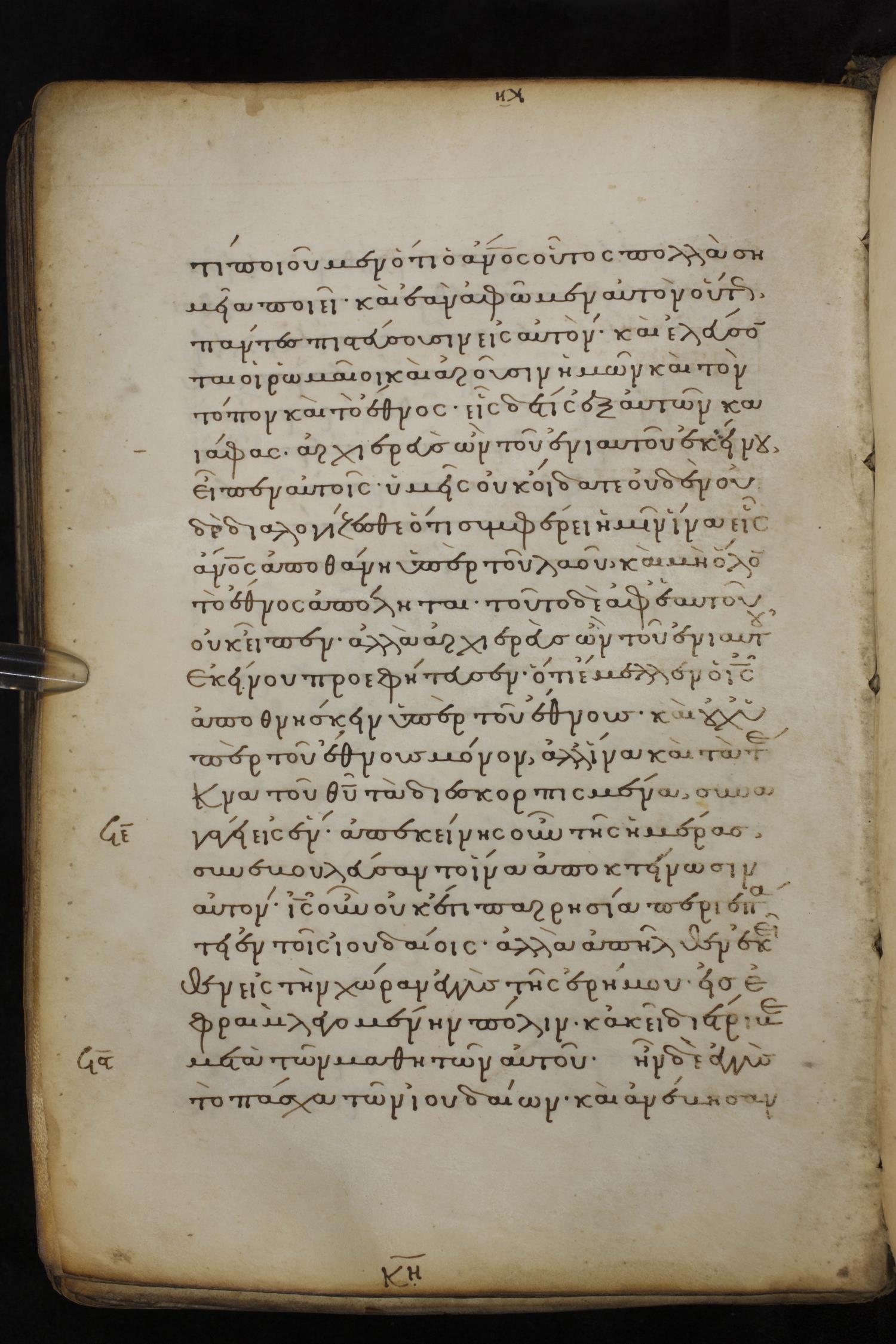 Thirteenth century minuscule of the Gospels on parchment; 237 leaves, 1 column, 23 lines per column. Images were taken at the National Library of Greece in Athens.