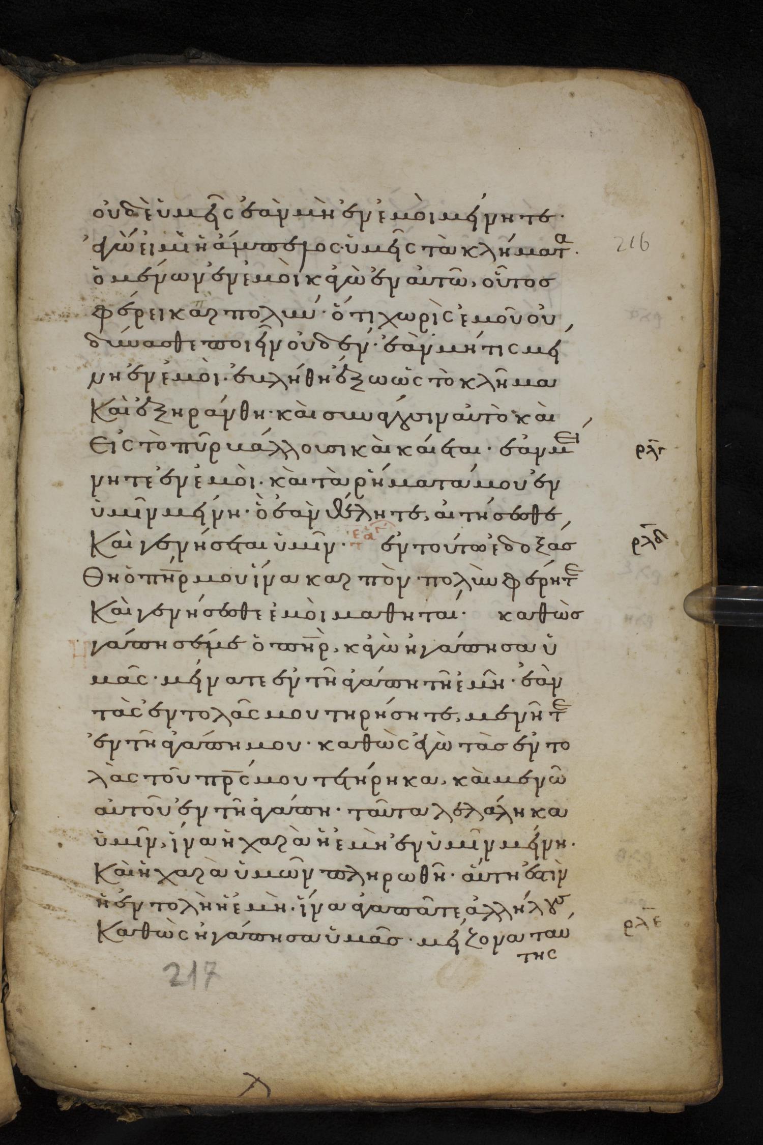 Thirteenth century minuscule of the Gospels on parchment; 237 leaves, 1 column, 23 lines per column. Images were taken at the National Library of Greece in Athens.