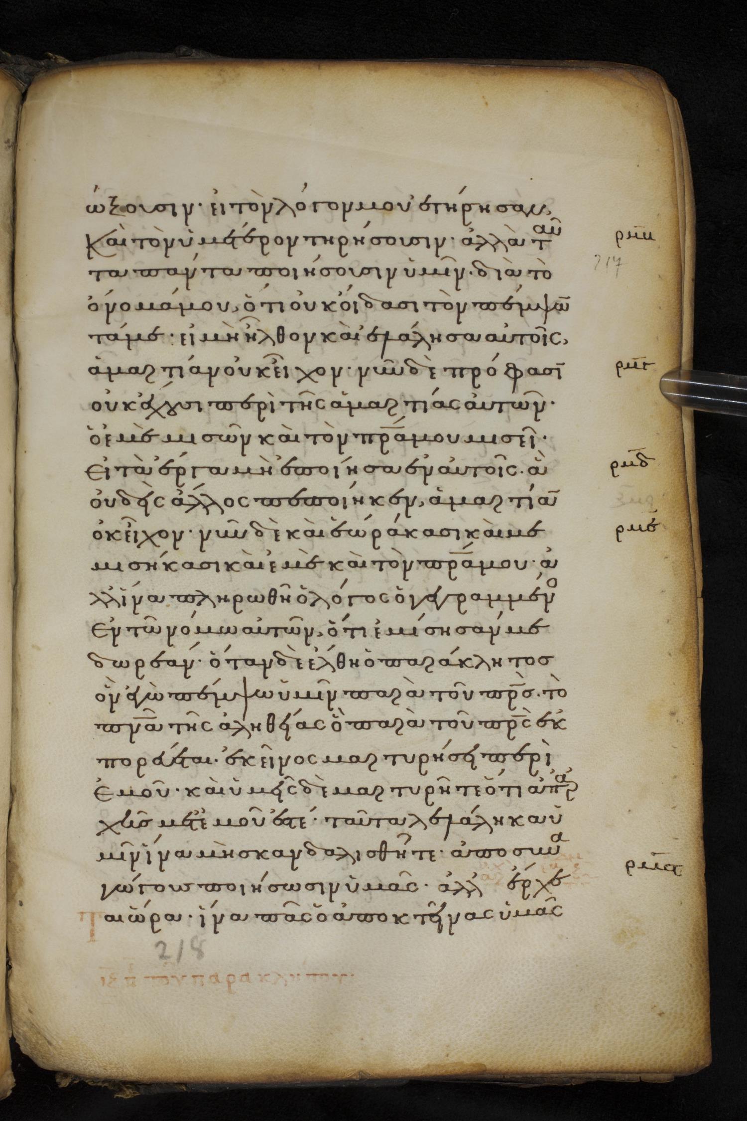 Thirteenth century minuscule of the Gospels on parchment; 237 leaves, 1 column, 23 lines per column. Images were taken at the National Library of Greece in Athens.