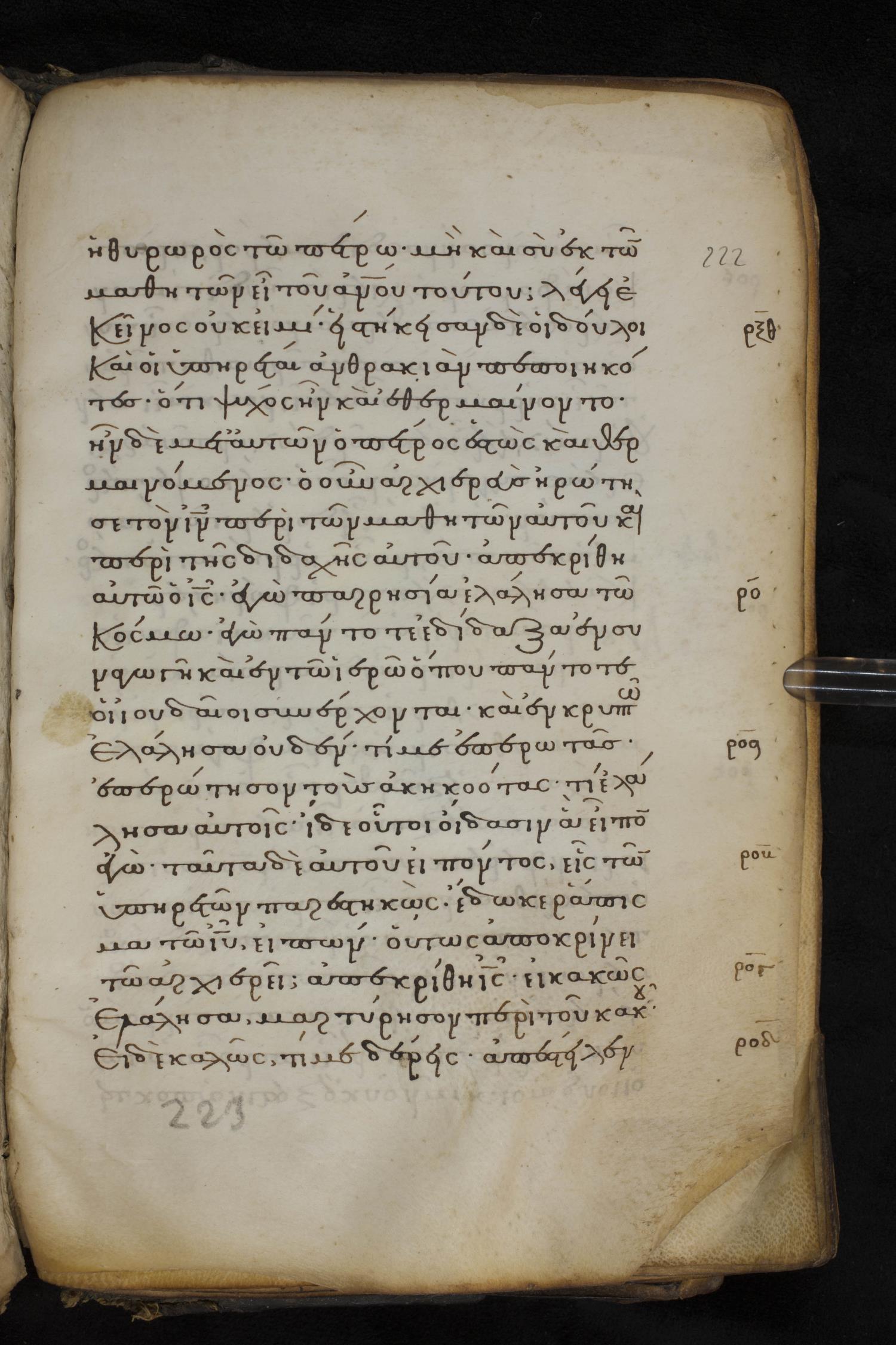 Thirteenth century minuscule of the Gospels on parchment; 237 leaves, 1 column, 23 lines per column. Images were taken at the National Library of Greece in Athens.