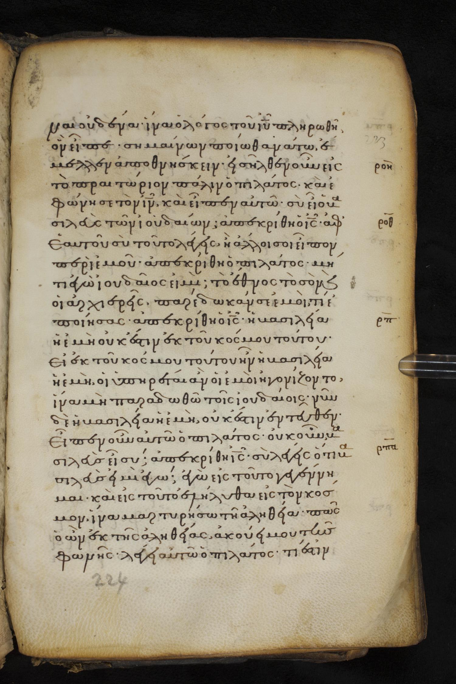 Thirteenth century minuscule of the Gospels on parchment; 237 leaves, 1 column, 23 lines per column. Images were taken at the National Library of Greece in Athens.
