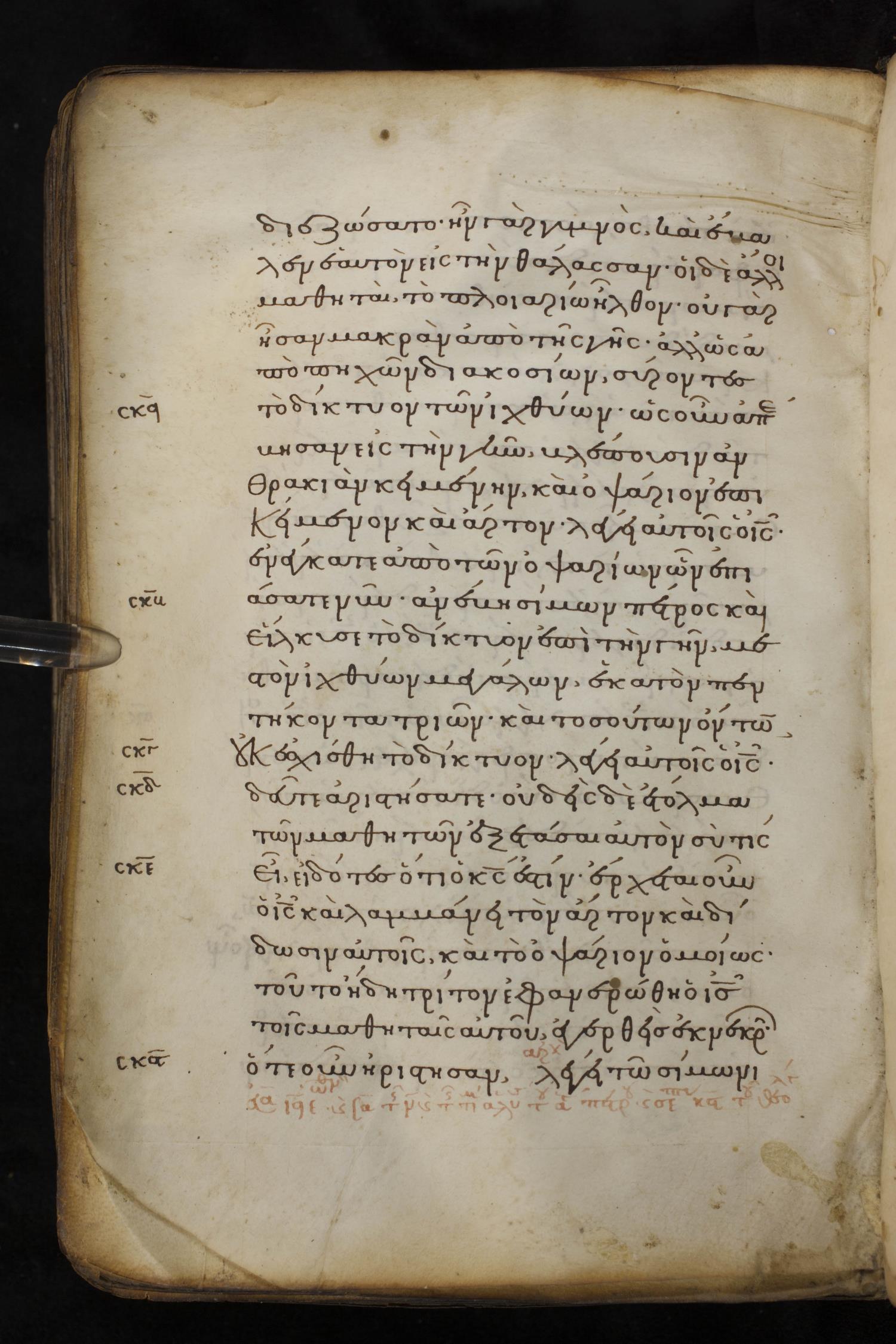 Thirteenth century minuscule of the Gospels on parchment; 237 leaves, 1 column, 23 lines per column. Images were taken at the National Library of Greece in Athens.