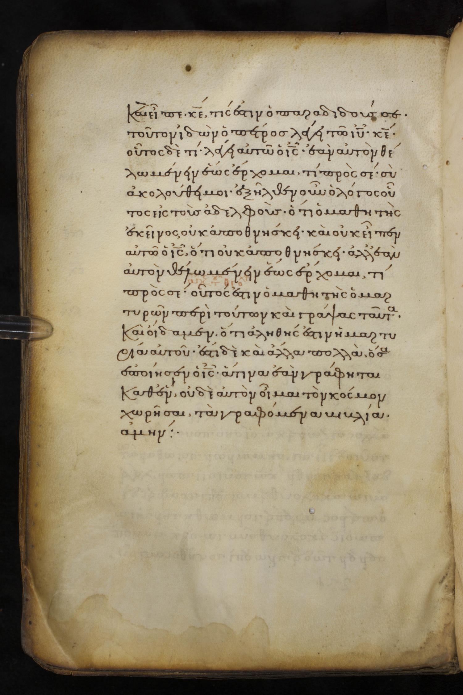 Thirteenth century minuscule of the Gospels on parchment; 237 leaves, 1 column, 23 lines per column. Images were taken at the National Library of Greece in Athens.