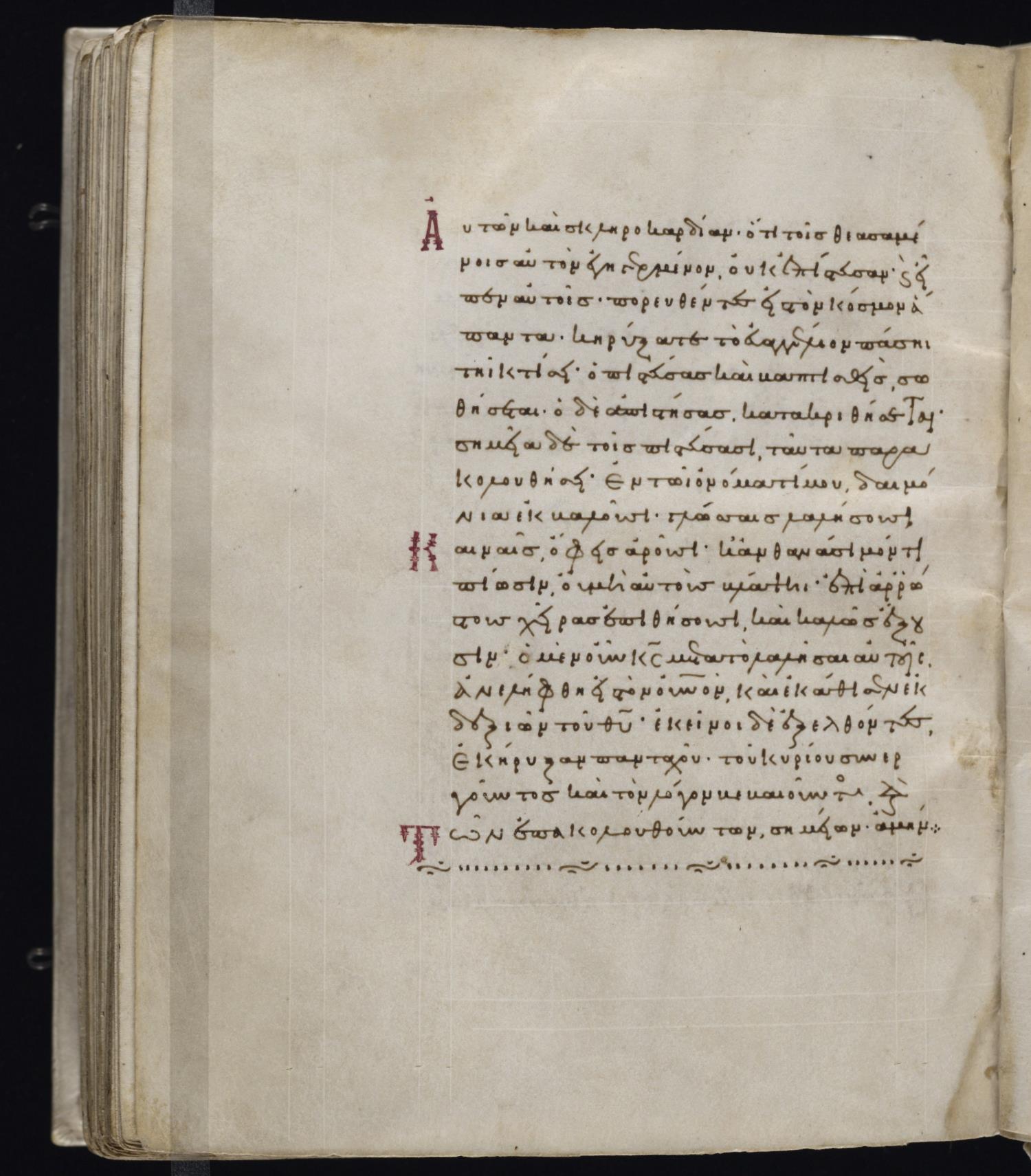 Tenth to Eleventh-Century Gospels minuscule manuscript on parchment; 265 leaves, single column, 20 lines per column. Images are made available by the Beinecke Rare Book and Manuscript Library, Yale University. For more information and recent images, visit the digital collection (Volume 1 and Volume 2).