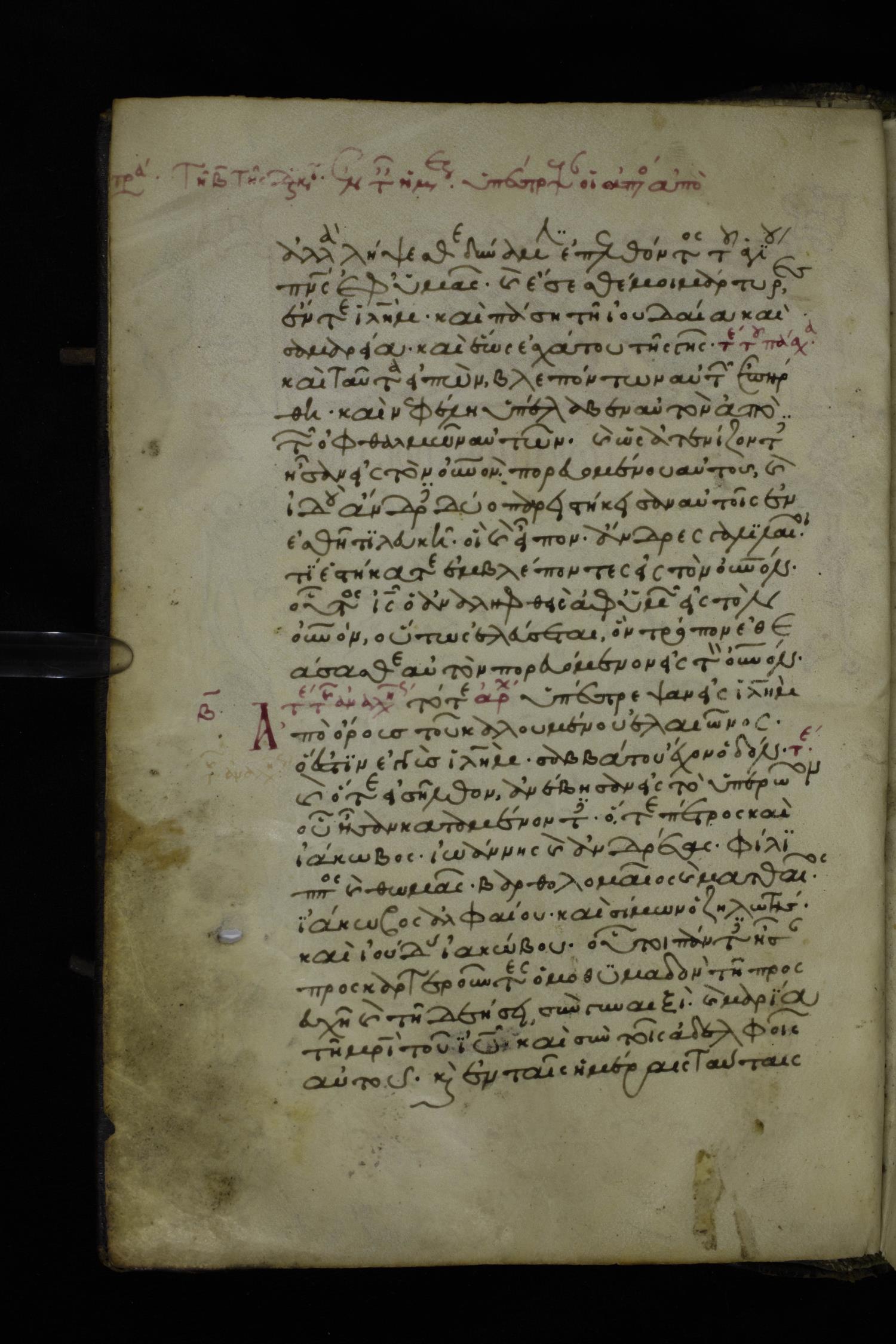 Fourteenth century minuscule of the Apostolos and Paul on parchment; 250 leaves, 1 column, 27 lines per column. Images were taken at the National Library of Greece in Athens.