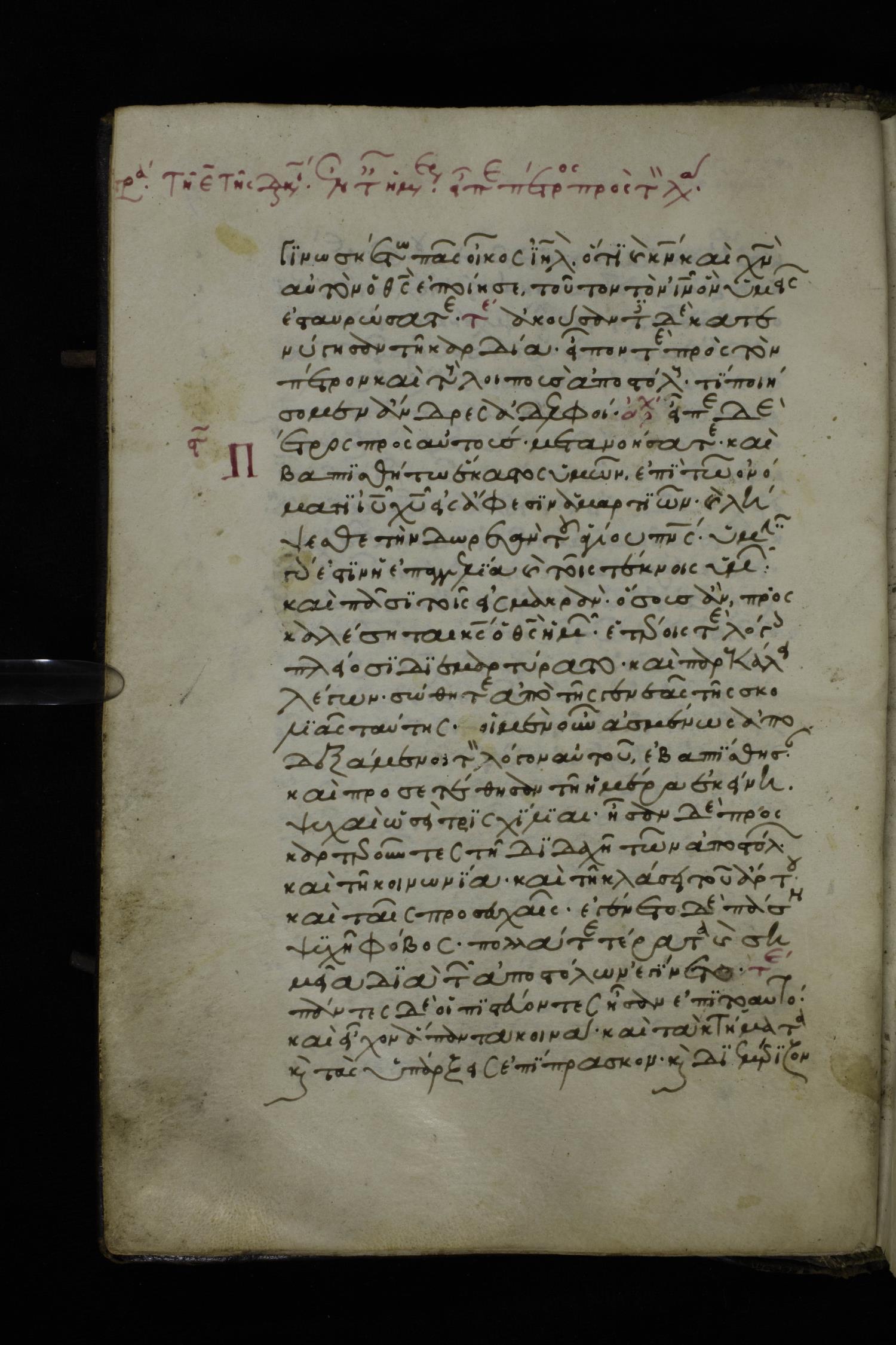 Fourteenth century minuscule of the Apostolos and Paul on parchment; 250 leaves, 1 column, 27 lines per column. Images were taken at the National Library of Greece in Athens.