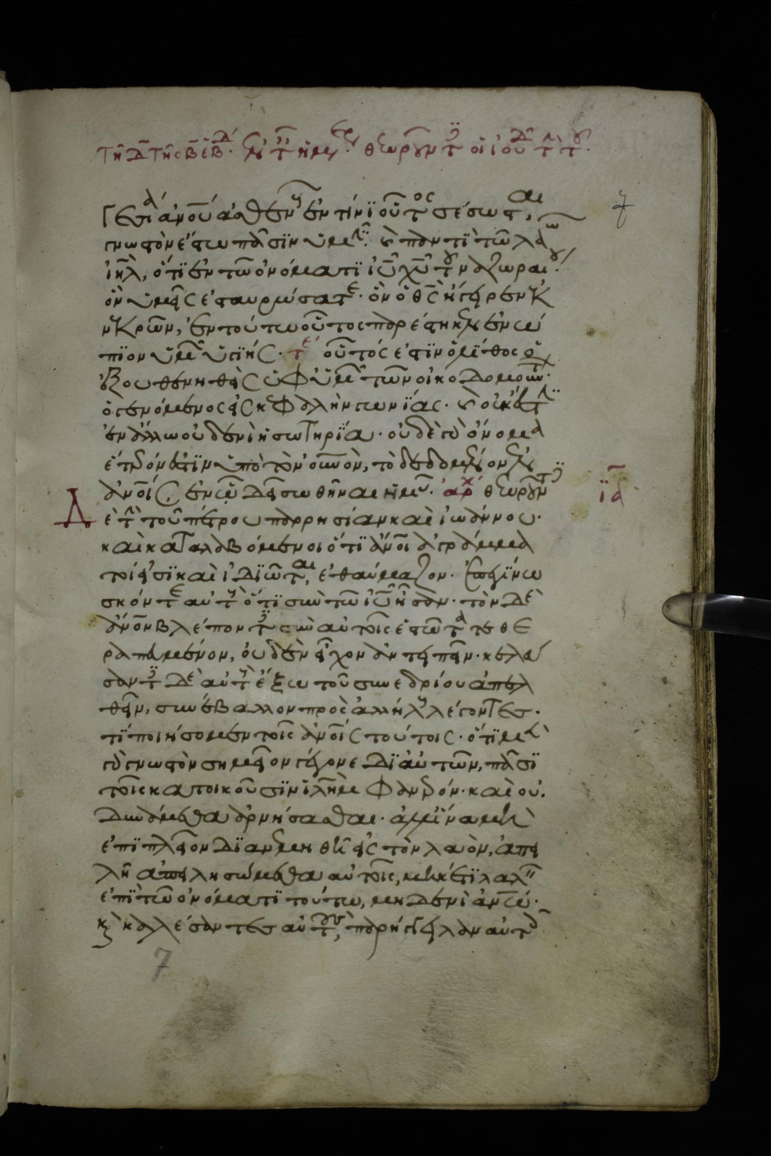 Fourteenth century minuscule of the Apostolos and Paul on parchment; 250 leaves, 1 column, 27 lines per column. Images were taken at the National Library of Greece in Athens.