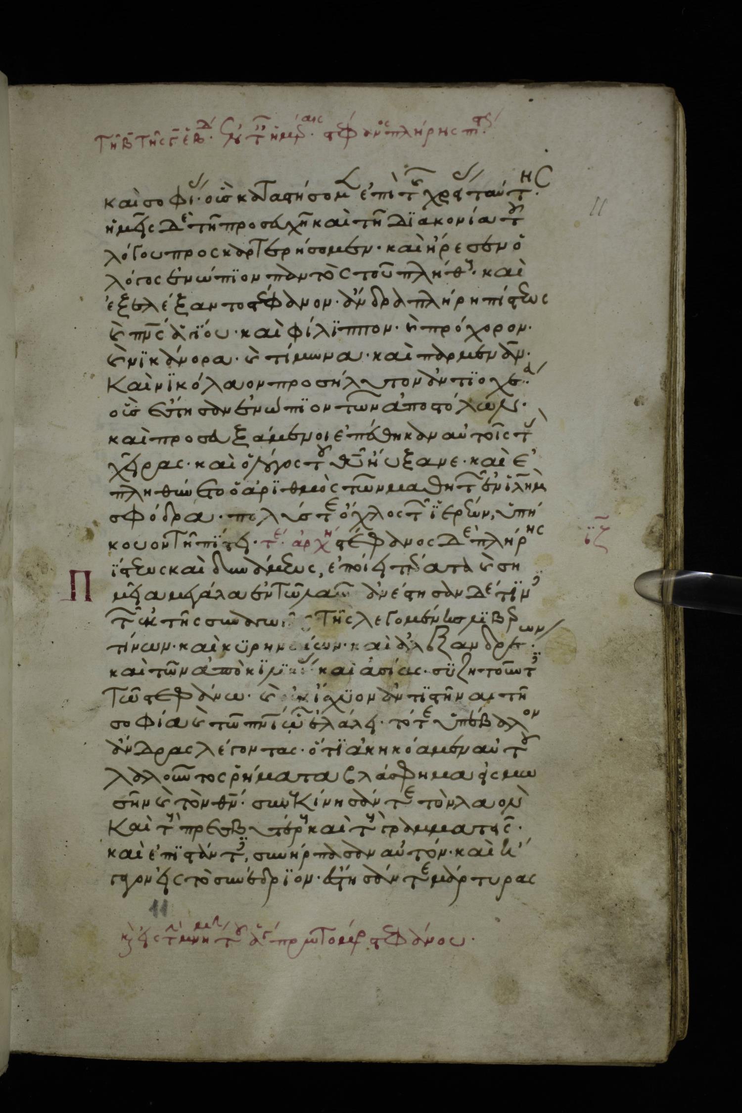 Fourteenth century minuscule of the Apostolos and Paul on parchment; 250 leaves, 1 column, 27 lines per column. Images were taken at the National Library of Greece in Athens.