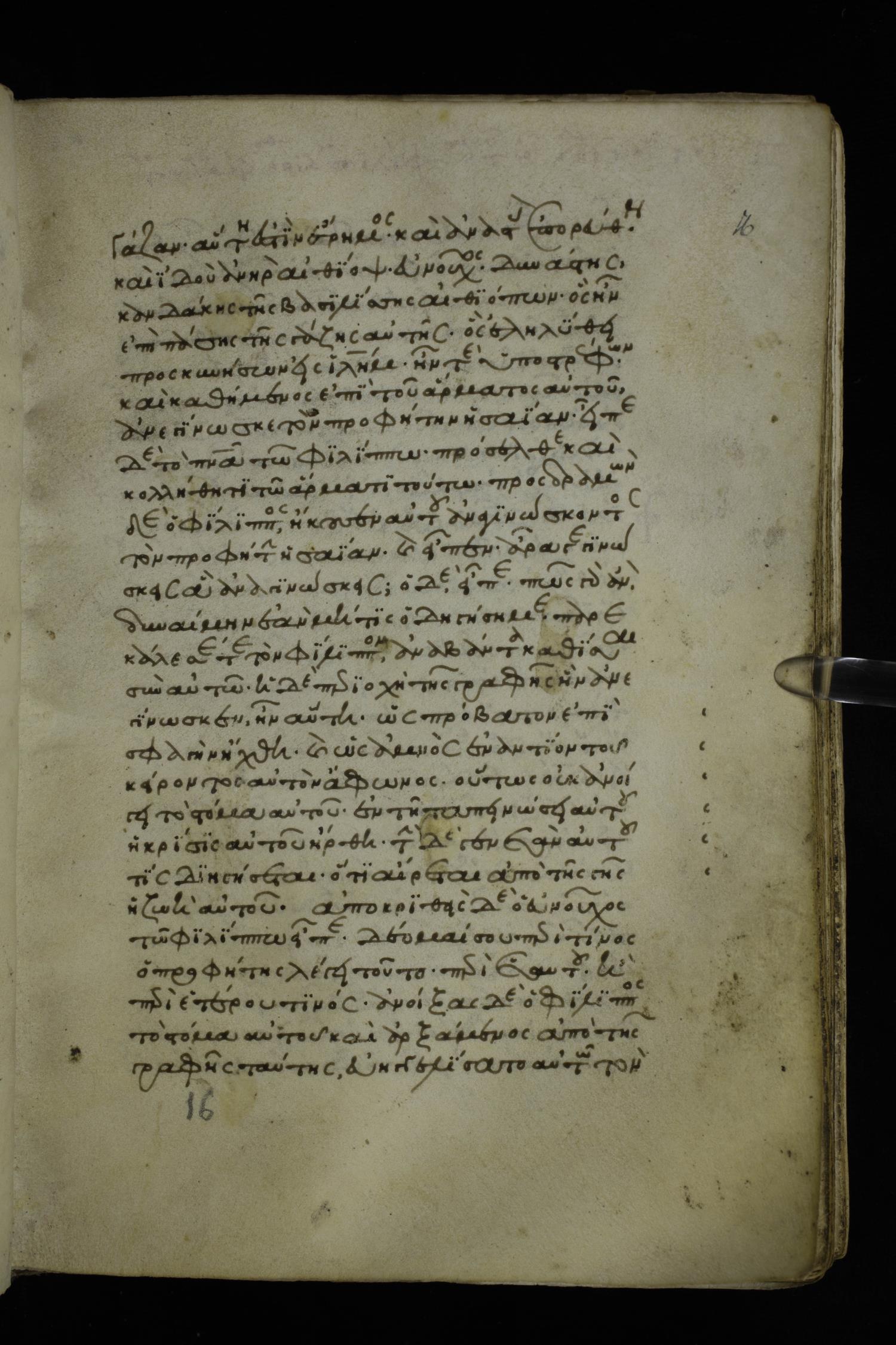 Fourteenth century minuscule of the Apostolos and Paul on parchment; 250 leaves, 1 column, 27 lines per column. Images were taken at the National Library of Greece in Athens.
