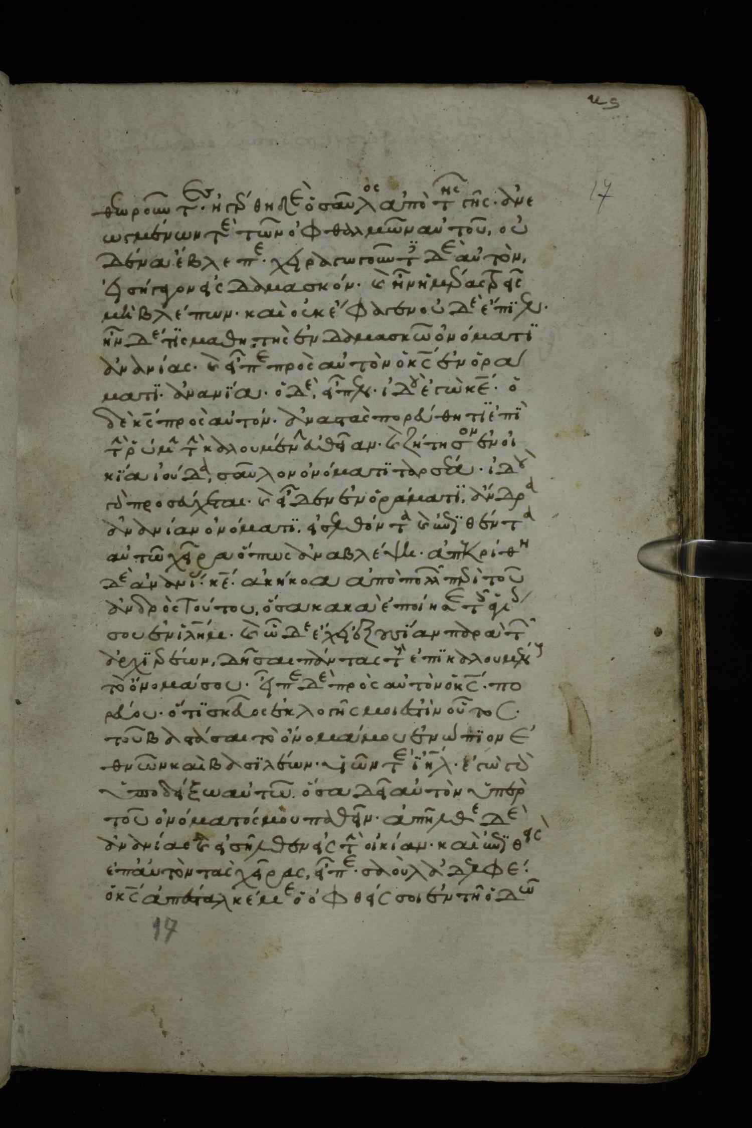 Fourteenth century minuscule of the Apostolos and Paul on parchment; 250 leaves, 1 column, 27 lines per column. Images were taken at the National Library of Greece in Athens.