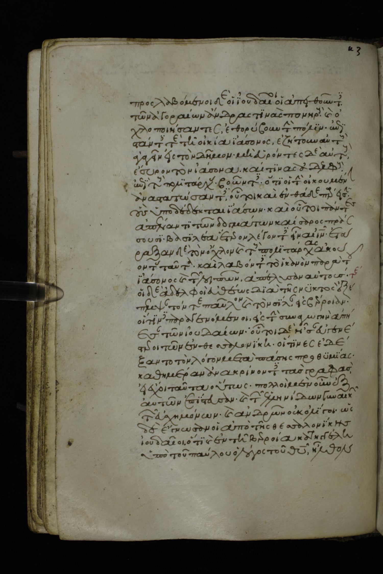 Fourteenth century minuscule of the Apostolos and Paul on parchment; 250 leaves, 1 column, 27 lines per column. Images were taken at the National Library of Greece in Athens.