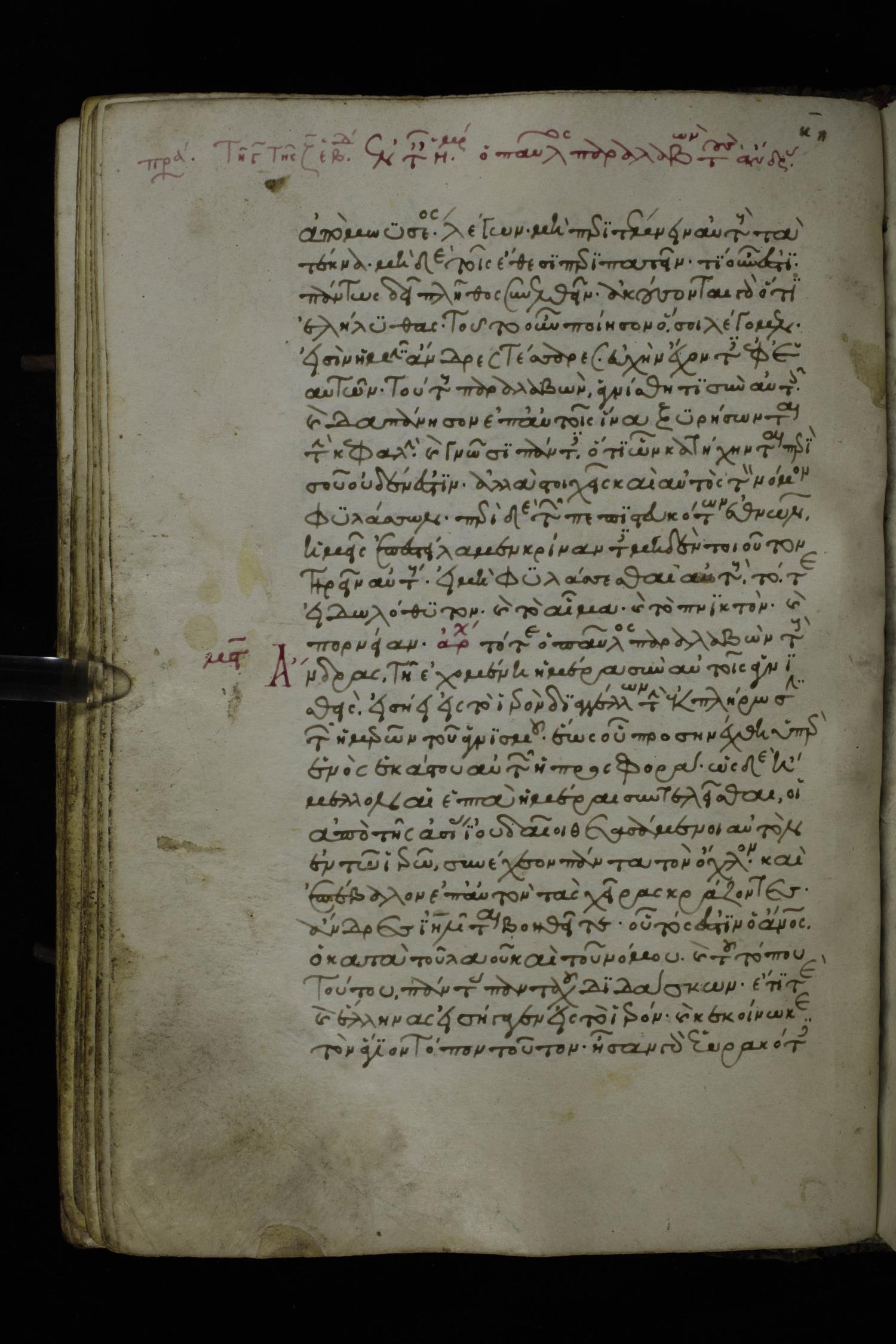 Fourteenth century minuscule of the Apostolos and Paul on parchment; 250 leaves, 1 column, 27 lines per column. Images were taken at the National Library of Greece in Athens.
