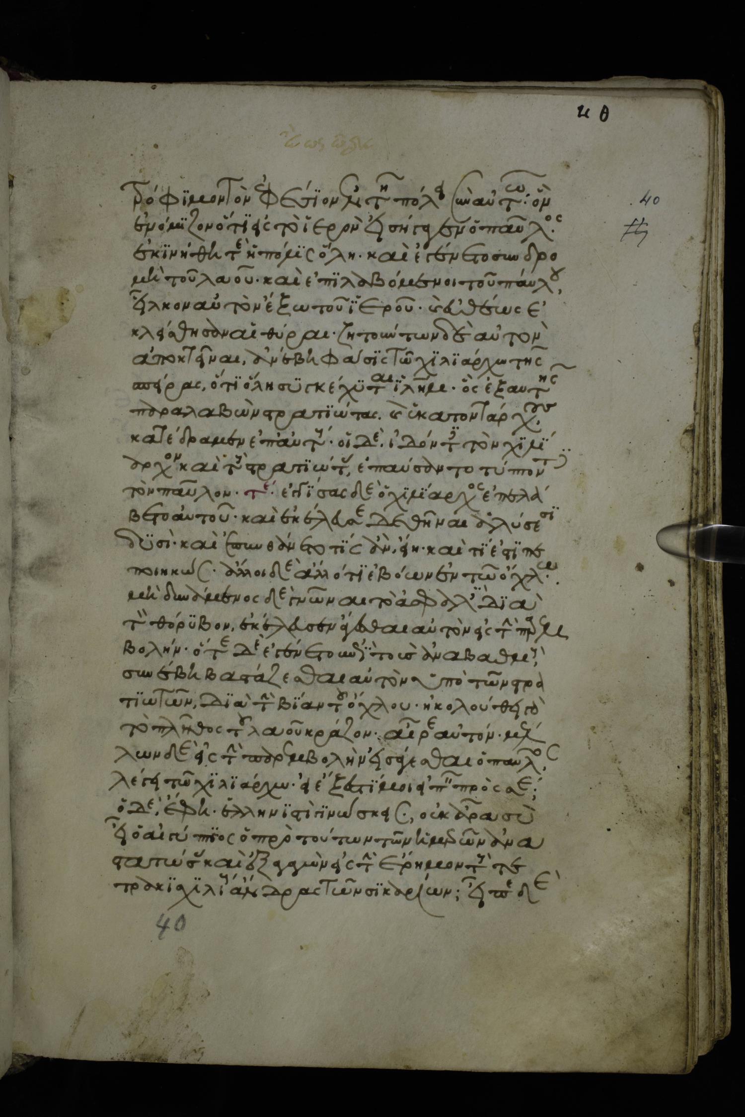 Fourteenth century minuscule of the Apostolos and Paul on parchment; 250 leaves, 1 column, 27 lines per column. Images were taken at the National Library of Greece in Athens.