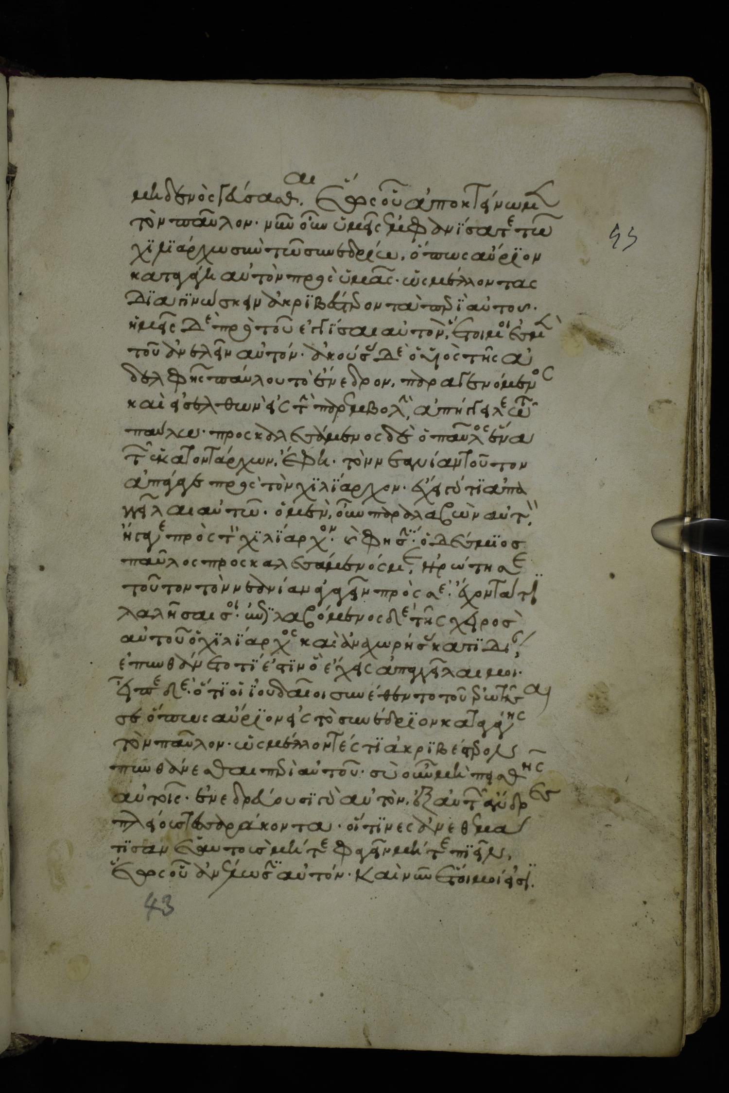 Fourteenth century minuscule of the Apostolos and Paul on parchment; 250 leaves, 1 column, 27 lines per column. Images were taken at the National Library of Greece in Athens.