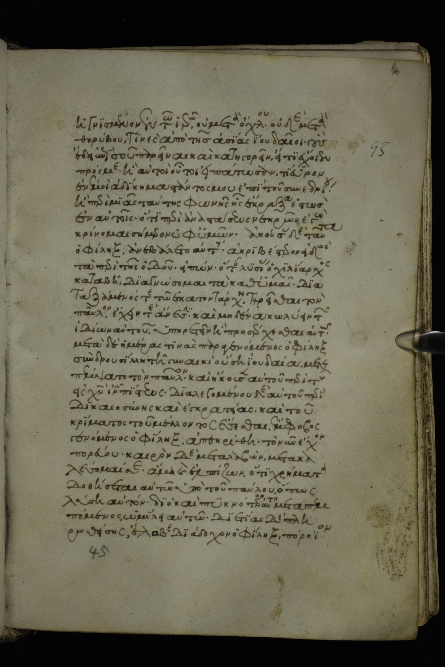 Fourteenth century minuscule of the Apostolos and Paul on parchment; 250 leaves, 1 column, 27 lines per column. Images were taken at the National Library of Greece in Athens.