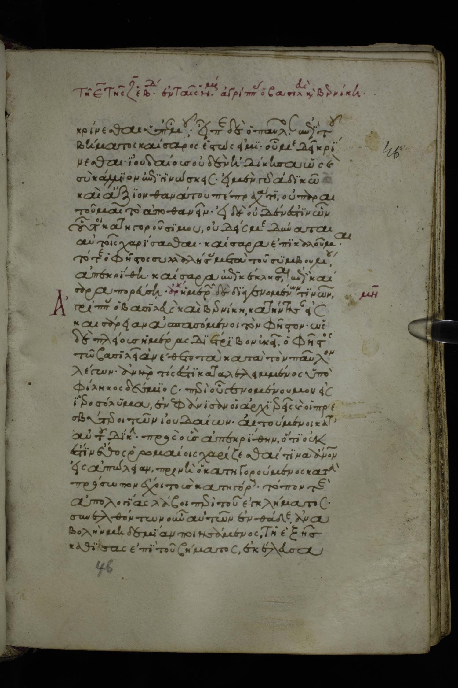 Fourteenth century minuscule of the Apostolos and Paul on parchment; 250 leaves, 1 column, 27 lines per column. Images were taken at the National Library of Greece in Athens.