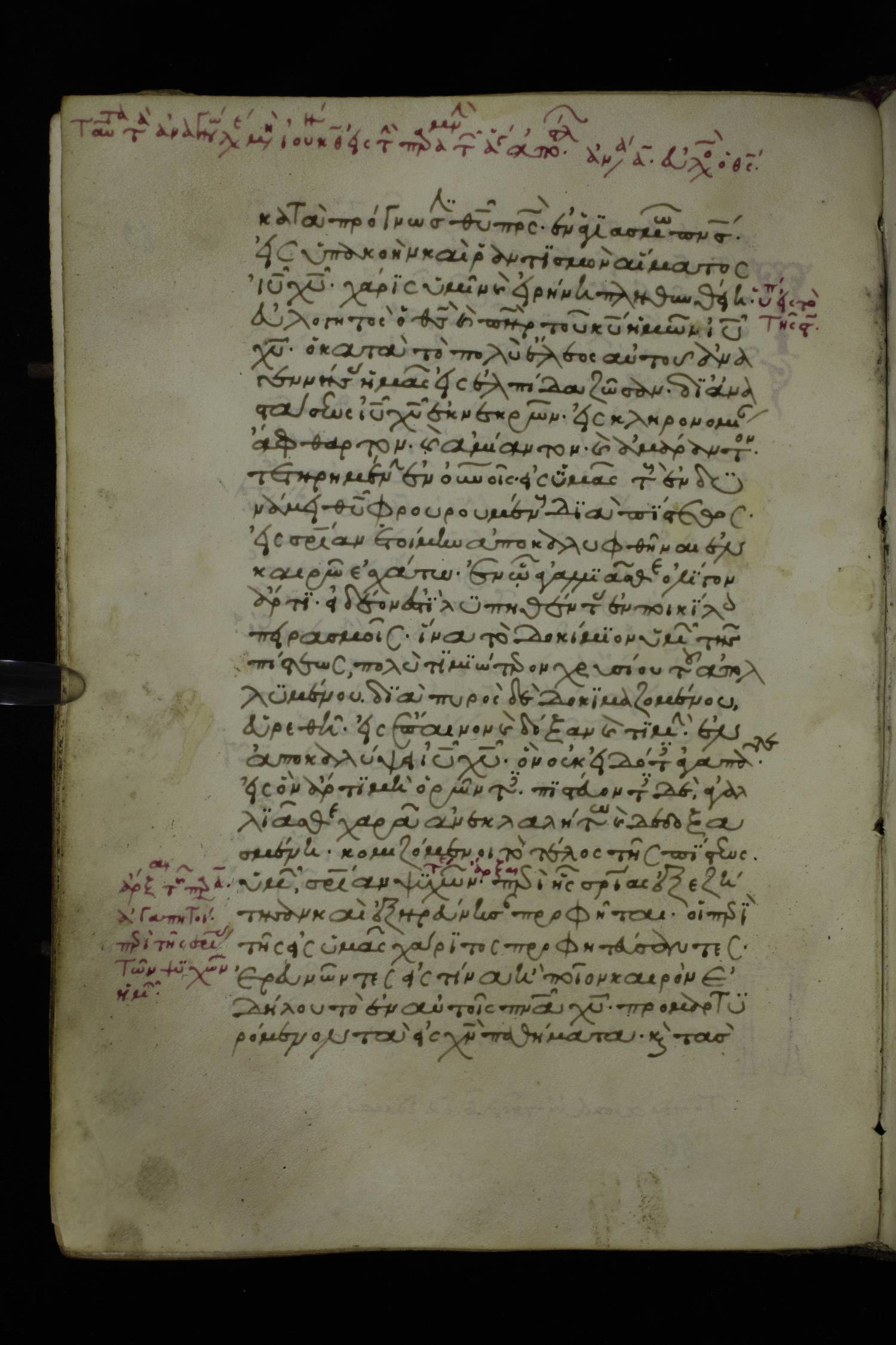 Fourteenth century minuscule of the Apostolos and Paul on parchment; 250 leaves, 1 column, 27 lines per column. Images were taken at the National Library of Greece in Athens.