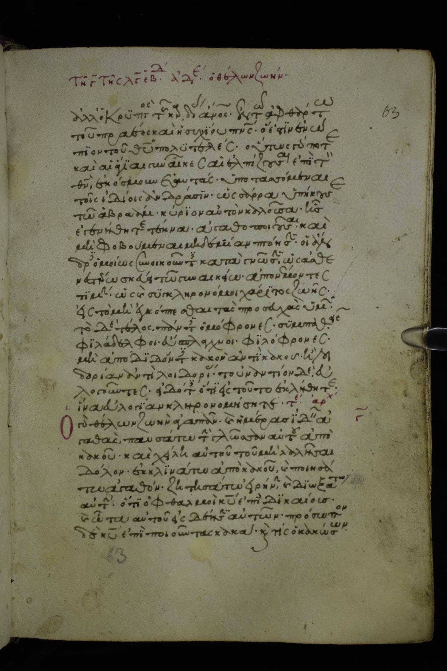 Fourteenth century minuscule of the Apostolos and Paul on parchment; 250 leaves, 1 column, 27 lines per column. Images were taken at the National Library of Greece in Athens.