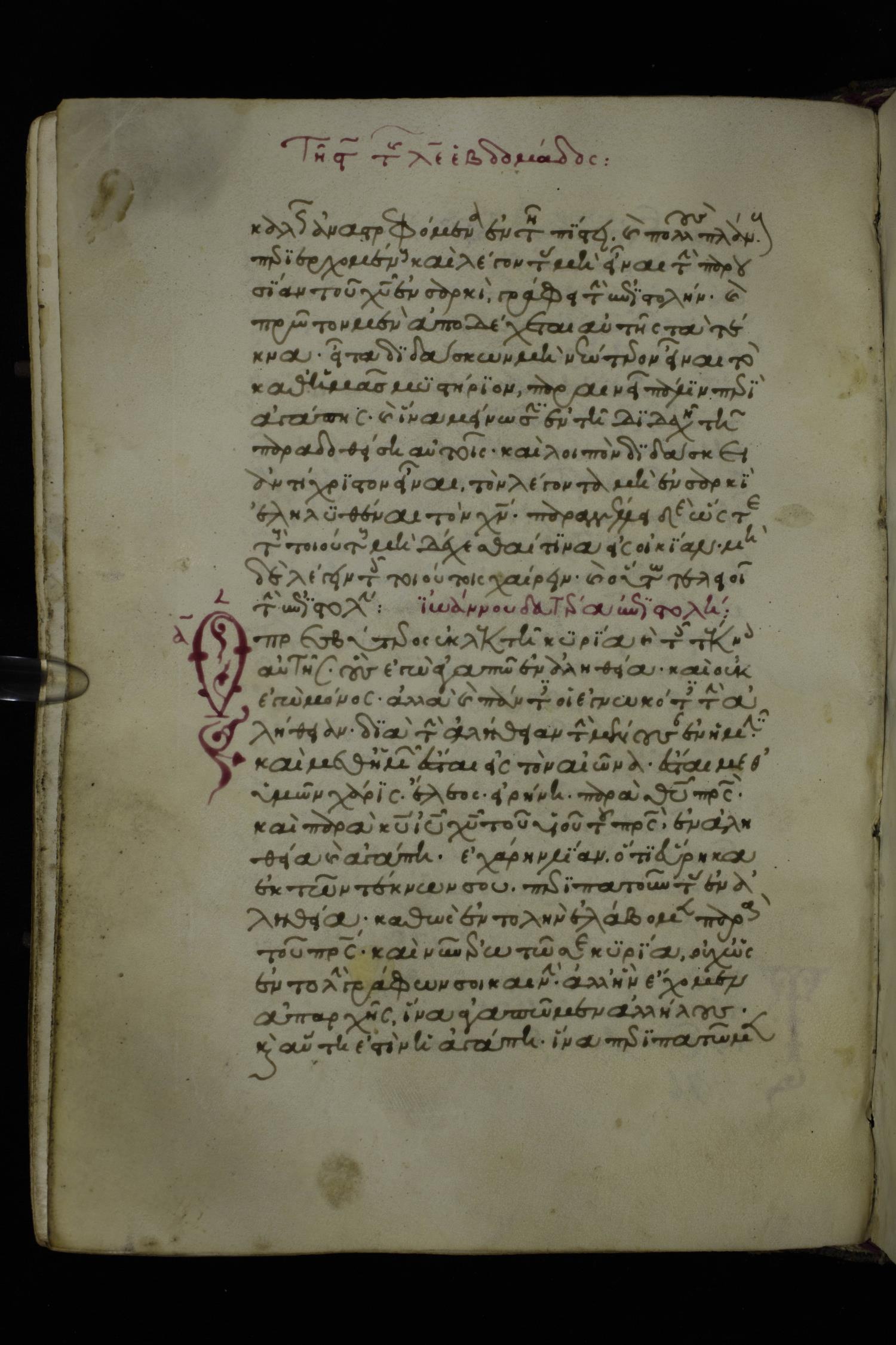 Fourteenth century minuscule of the Apostolos and Paul on parchment; 250 leaves, 1 column, 27 lines per column. Images were taken at the National Library of Greece in Athens.