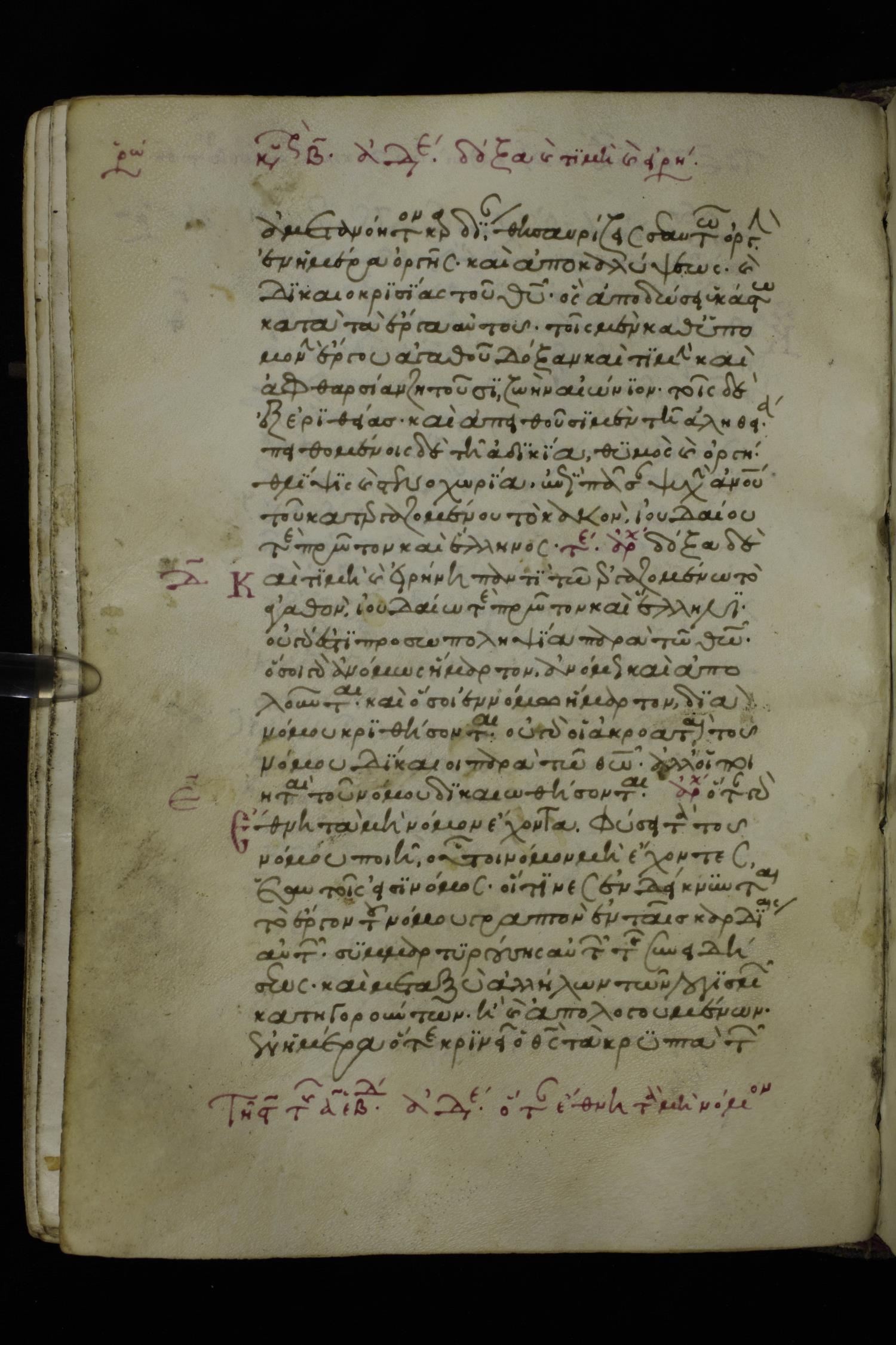 Fourteenth century minuscule of the Apostolos and Paul on parchment; 250 leaves, 1 column, 27 lines per column. Images were taken at the National Library of Greece in Athens.