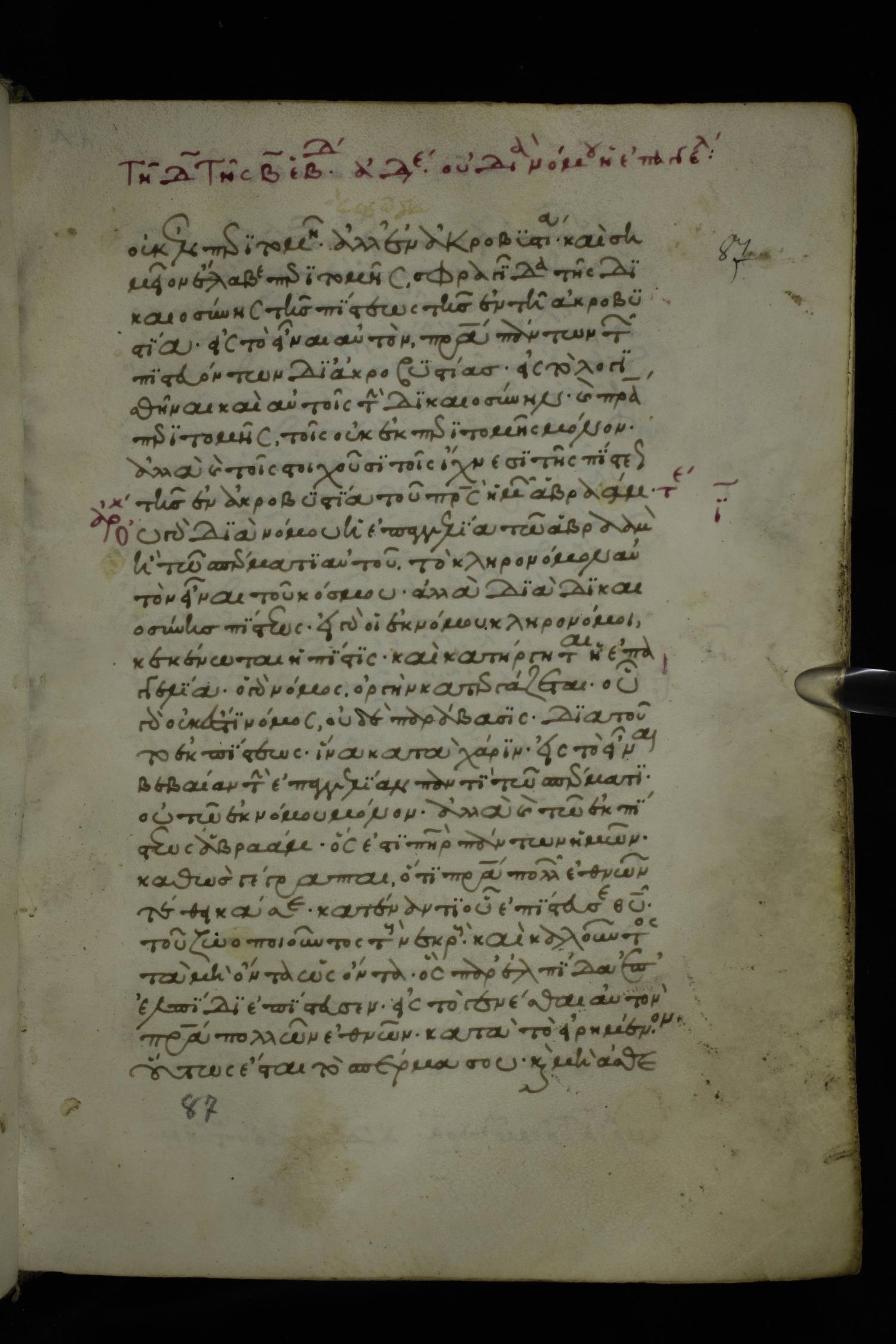 Fourteenth century minuscule of the Apostolos and Paul on parchment; 250 leaves, 1 column, 27 lines per column. Images were taken at the National Library of Greece in Athens.