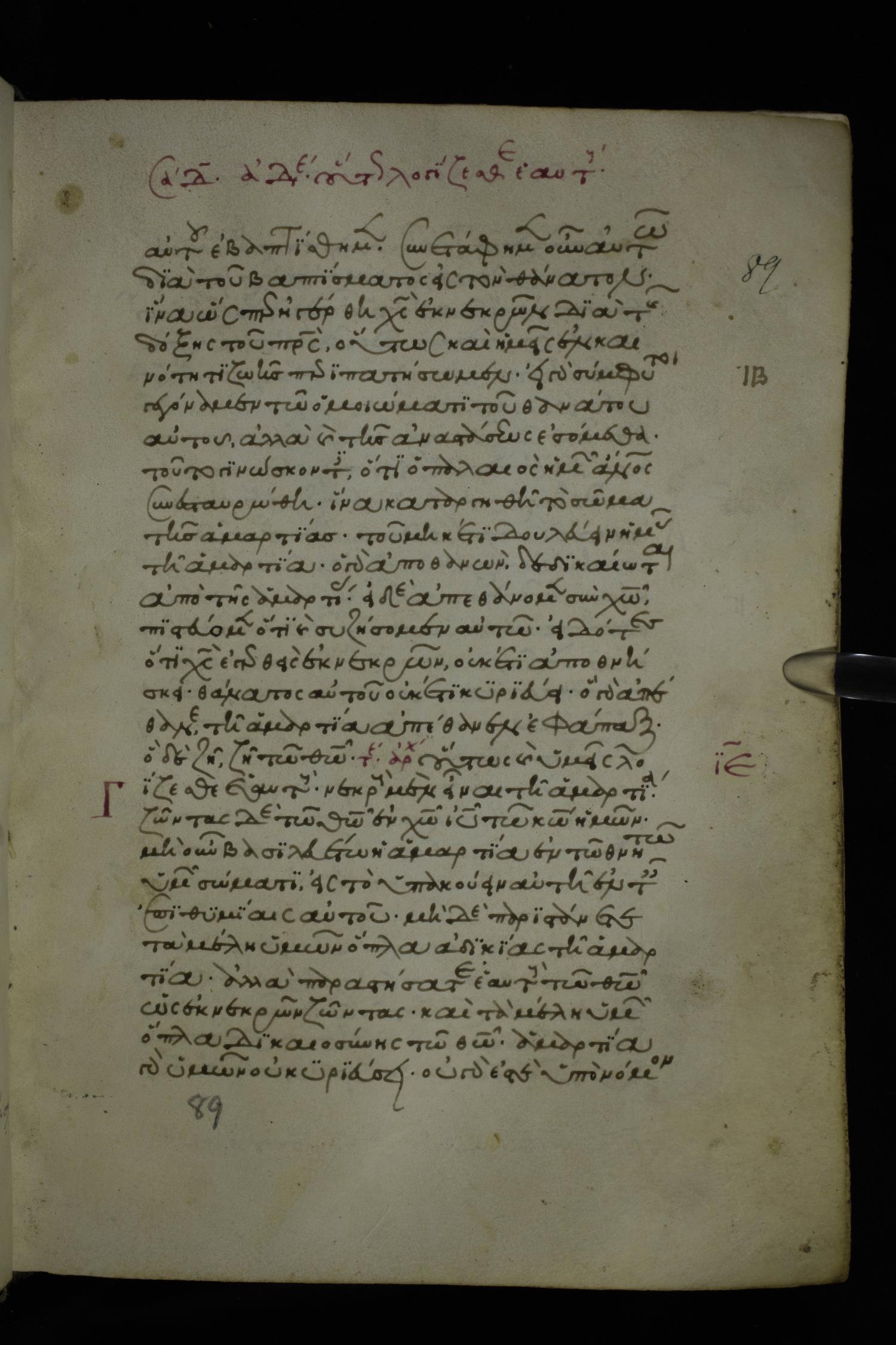 Fourteenth century minuscule of the Apostolos and Paul on parchment; 250 leaves, 1 column, 27 lines per column. Images were taken at the National Library of Greece in Athens.