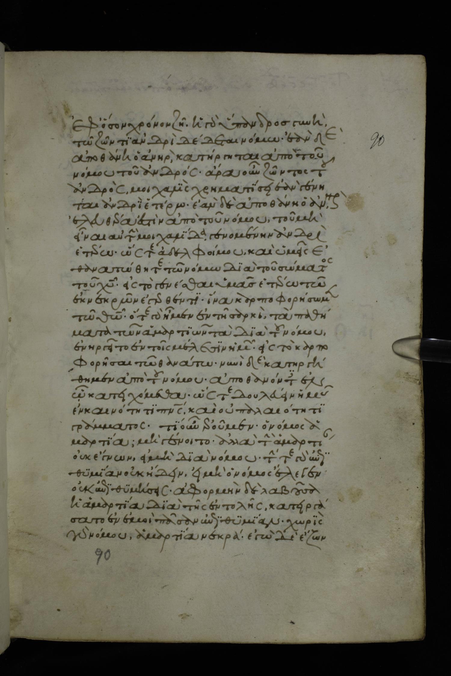 Τί οὖν ἐροῦμεν; ὁ νόμος ἁμαρτία; μὴ γένοιτο· ἀλλὰ τὴν ἁμαρτίαν οὐκ ἔγνων εἰ μὴ διὰ νόμου, τήν τε γὰρ ἐπιθυμίαν οὐκ ᾔδειν εἰ μὴ ὁ νόμος ἔλεγεν Οὐκ ἐπιθυμήσεις·