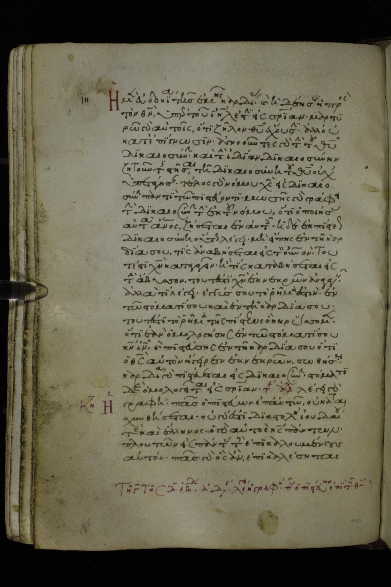 Fourteenth century minuscule of the Apostolos and Paul on parchment; 250 leaves, 1 column, 27 lines per column. Images were taken at the National Library of Greece in Athens.