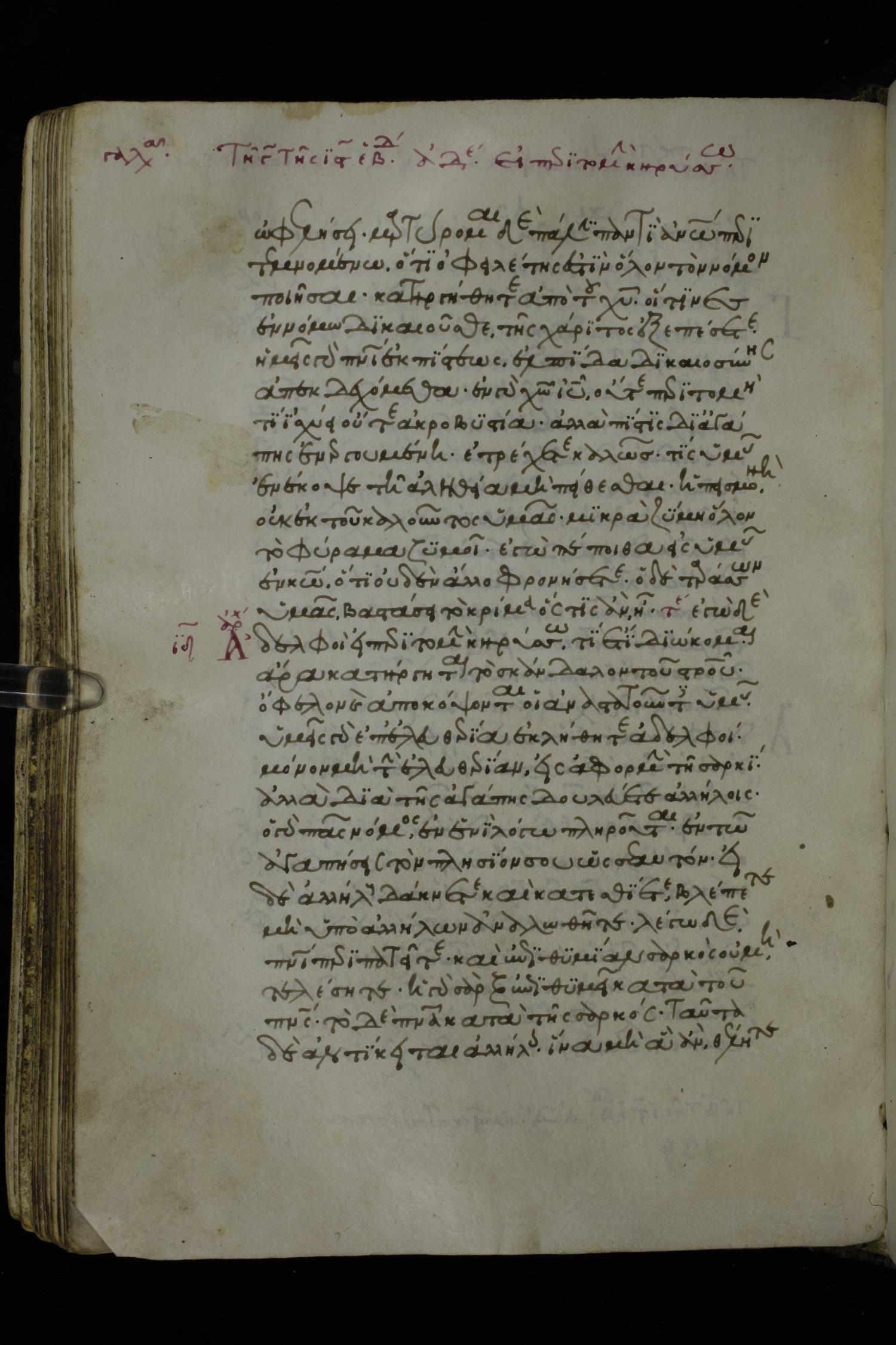 Fourteenth century minuscule of the Apostolos and Paul on parchment; 250 leaves, 1 column, 27 lines per column. Images were taken at the National Library of Greece in Athens.