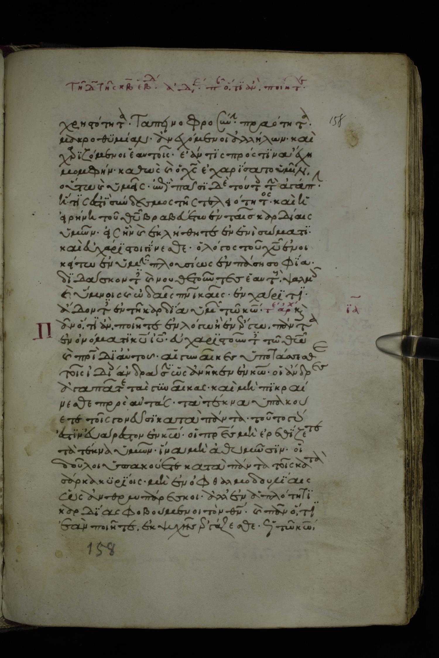Fourteenth century minuscule of the Apostolos and Paul on parchment; 250 leaves, 1 column, 27 lines per column. Images were taken at the National Library of Greece in Athens.