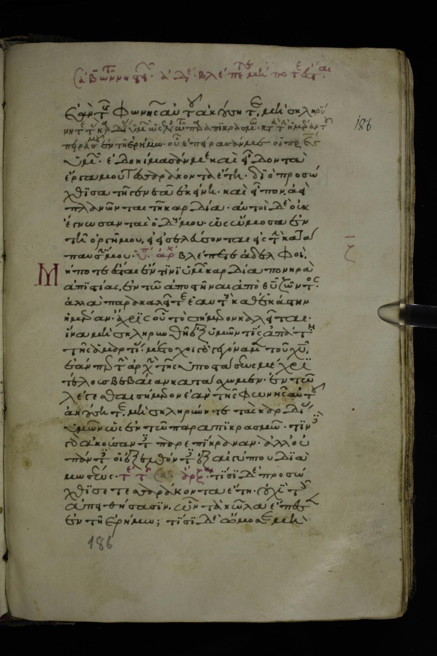 Fourteenth century minuscule of the Apostolos and Paul on parchment; 250 leaves, 1 column, 27 lines per column. Images were taken at the National Library of Greece in Athens.