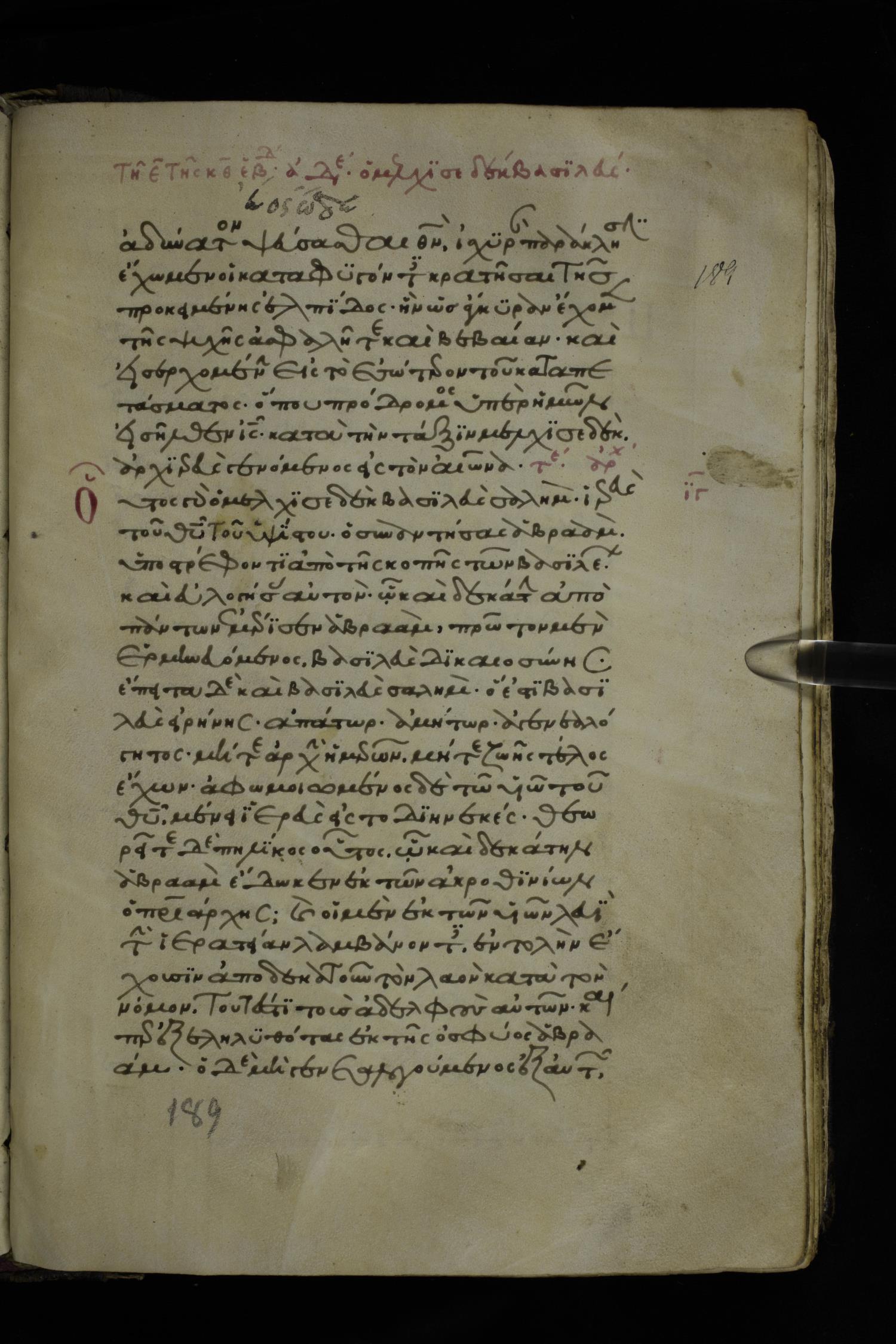 Fourteenth century minuscule of the Apostolos and Paul on parchment; 250 leaves, 1 column, 27 lines per column. Images were taken at the National Library of Greece in Athens.