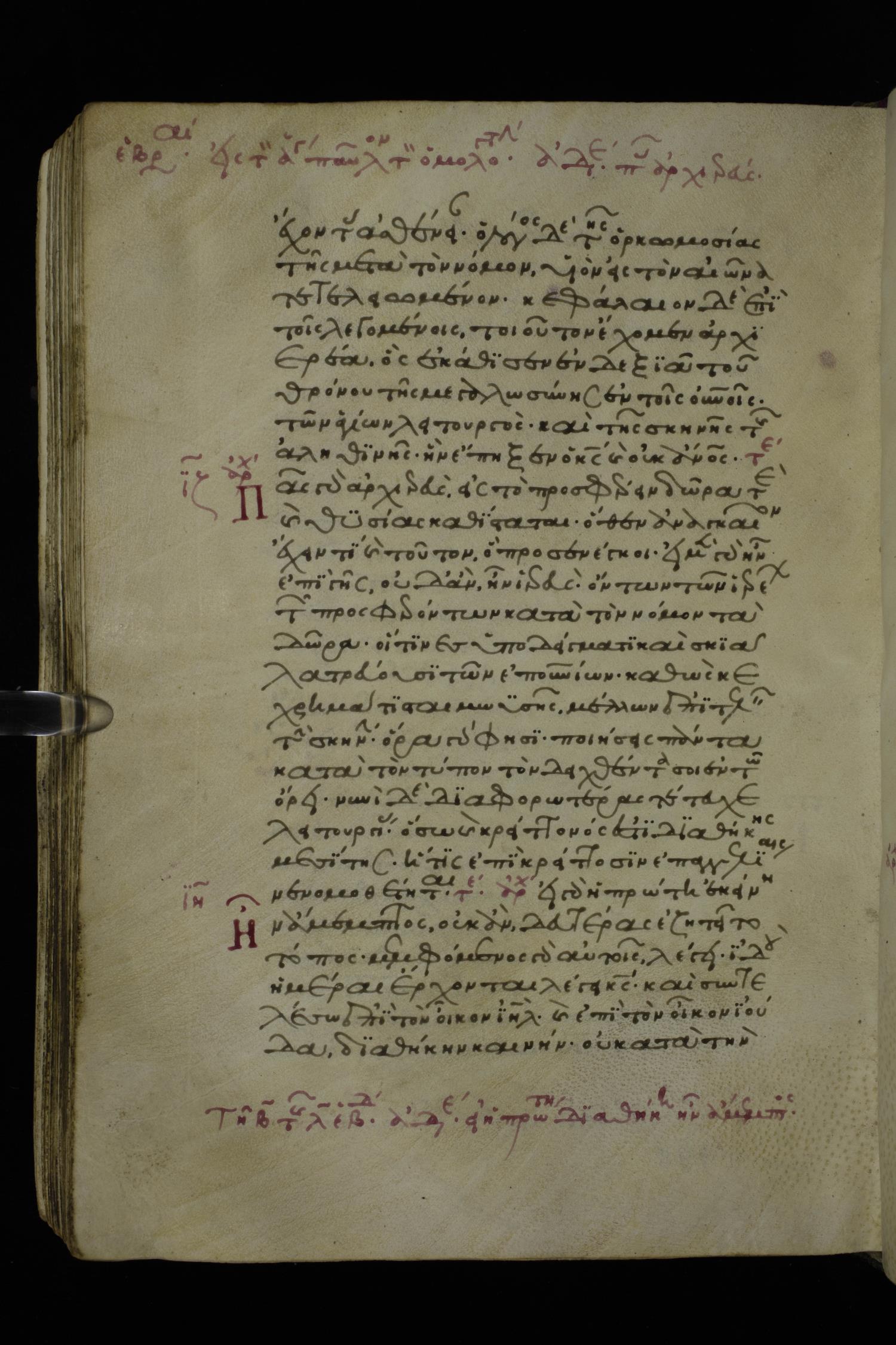 Κεφάλαιον δὲ ἐπὶ τοῖς λεγομένοις, τοιοῦτον ἔχομεν ἀρχιερέα, ὃς ἐκάθισεν ἐν δεξιᾷ τοῦ θρόνου τῆς μεγαλωσύνης ἐν τοῖς οὐρανοῖς,