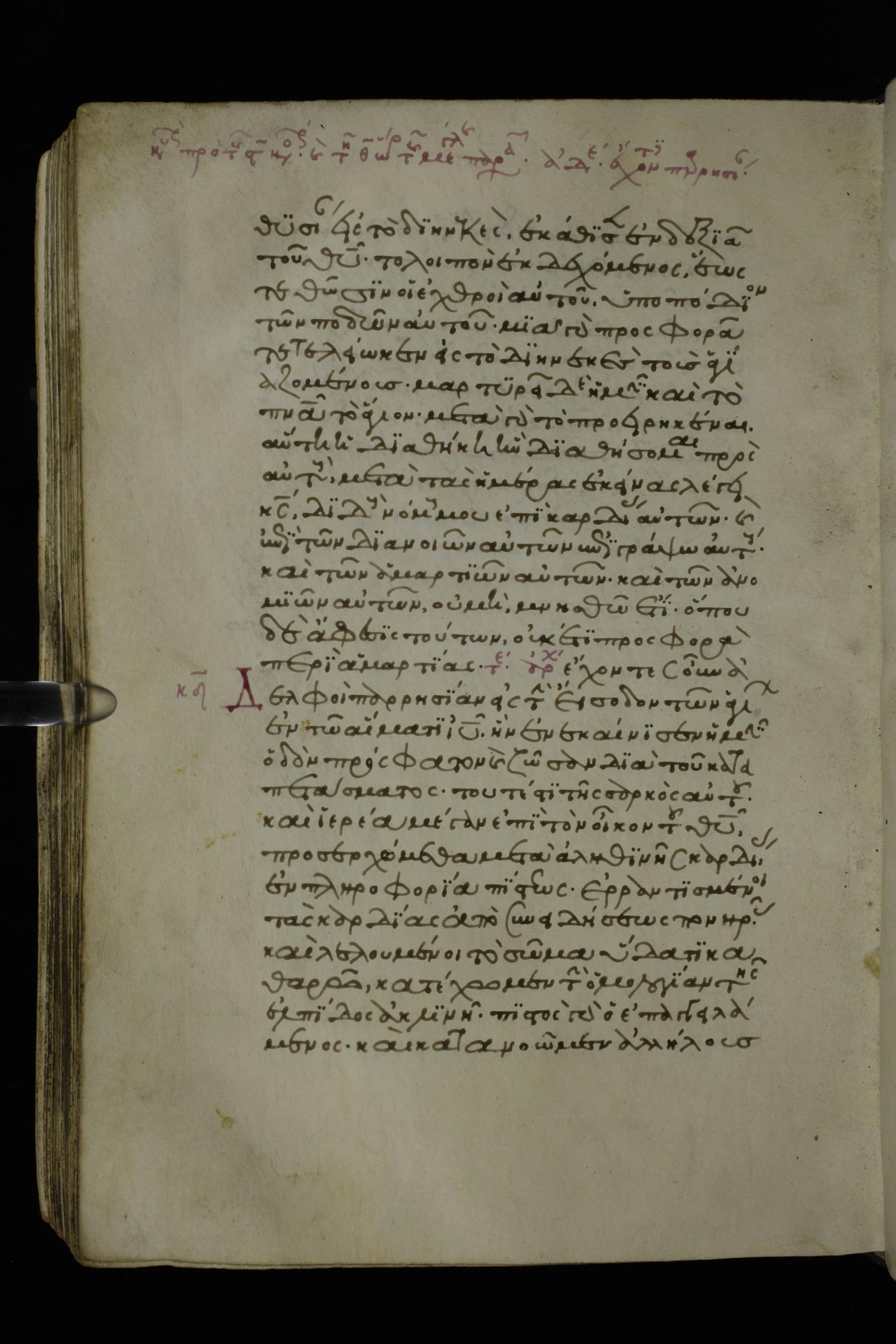 Fourteenth century minuscule of the Apostolos and Paul on parchment; 250 leaves, 1 column, 27 lines per column. Images were taken at the National Library of Greece in Athens.
