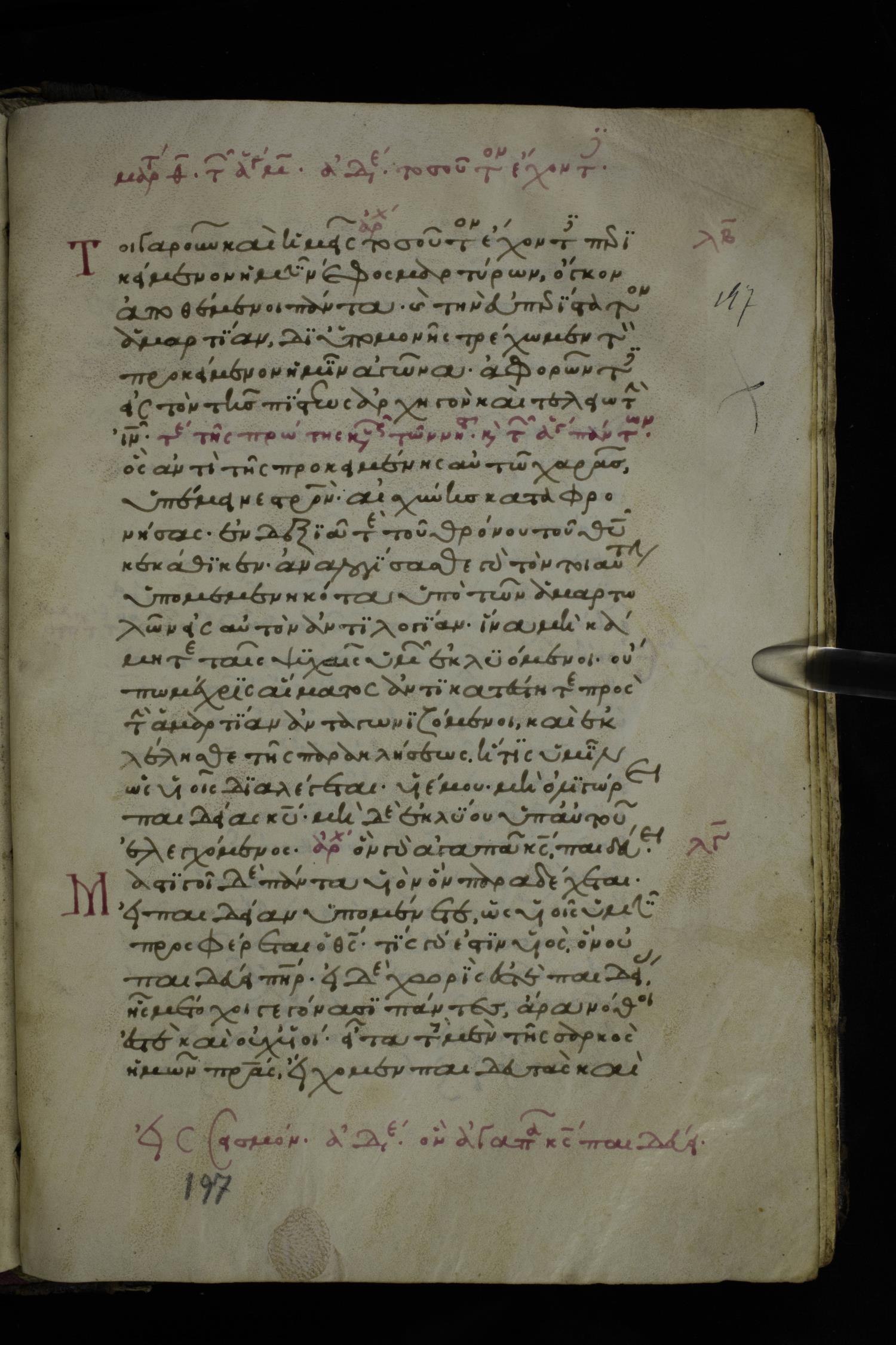 Fourteenth century minuscule of the Apostolos and Paul on parchment; 250 leaves, 1 column, 27 lines per column. Images were taken at the National Library of Greece in Athens.